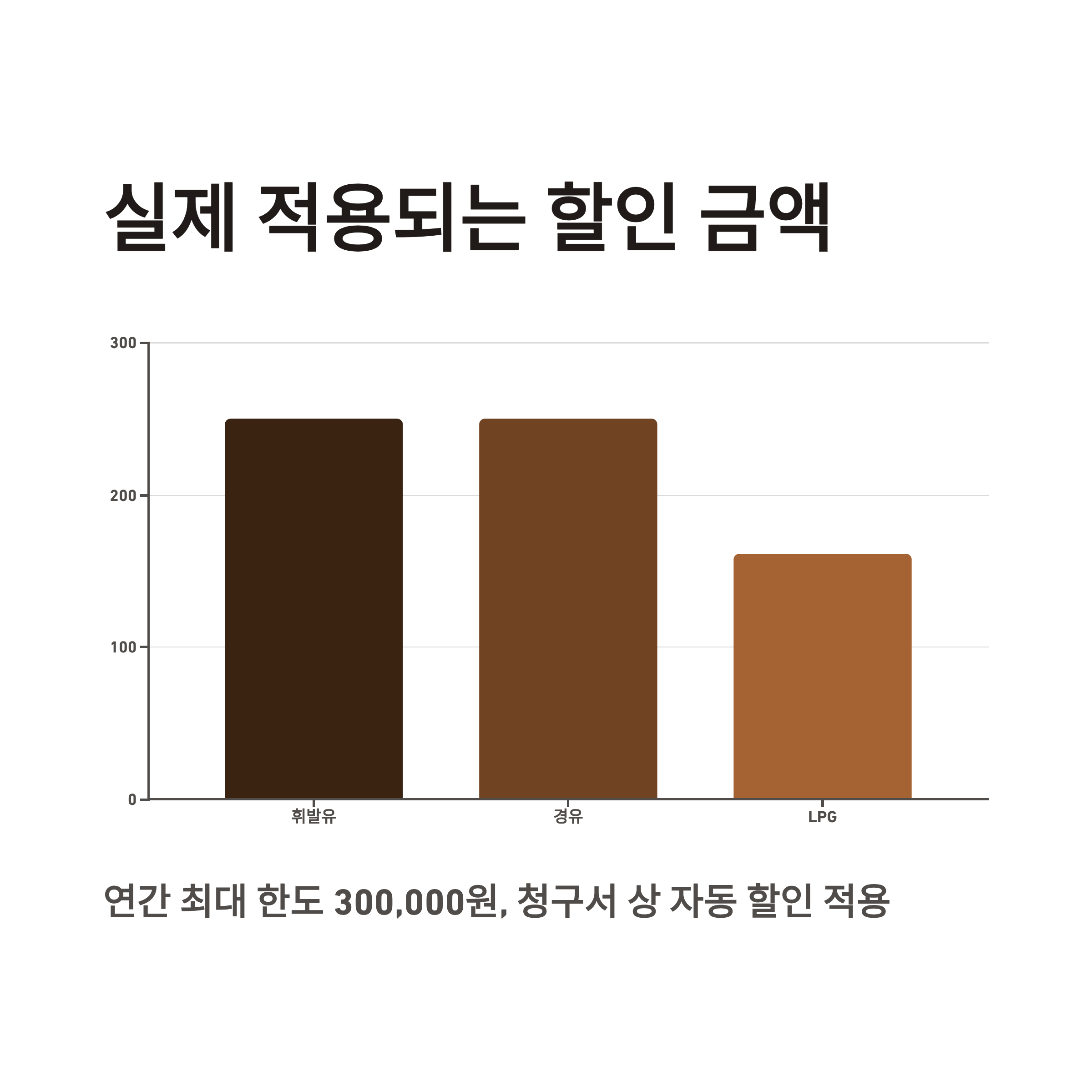 휘발유/경유는 리터당 약 250원, LPG는 약 161원이 할인되며,