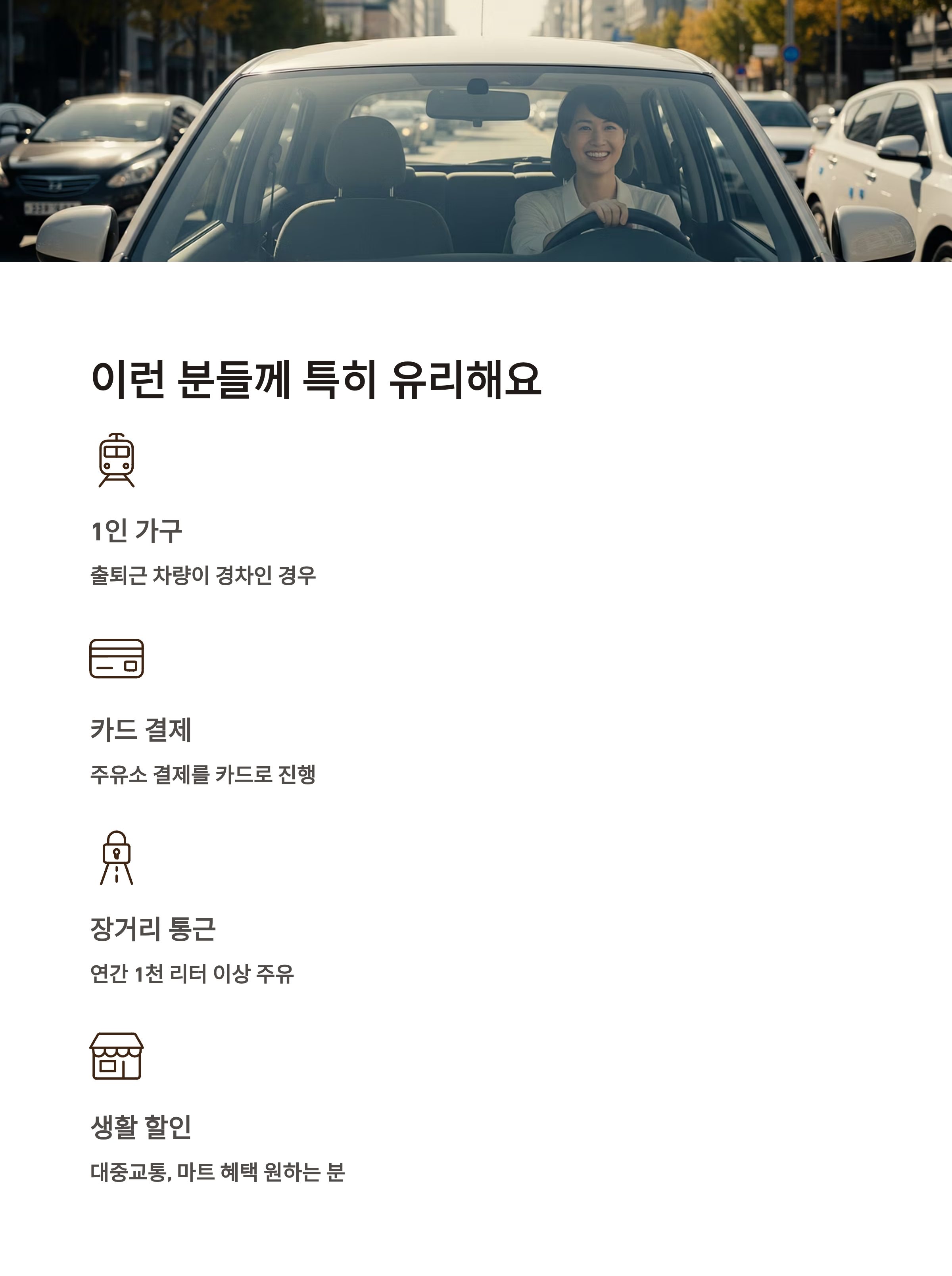 - 연간 1천 리터 이상 주유하는 장거리 통근자