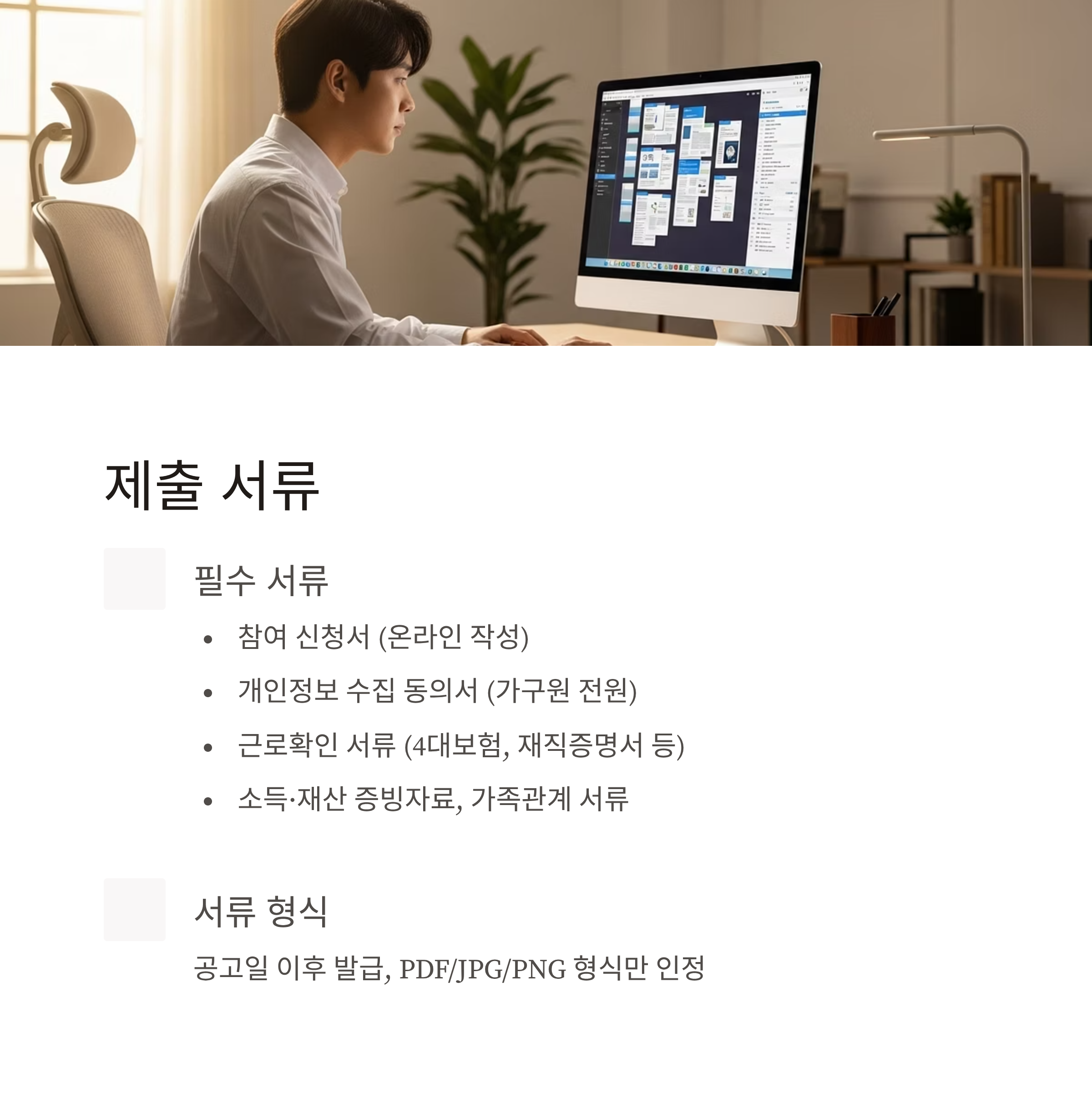※ 서류는 모두 모집 공고일 이후 발급분만 인정되며, PDF/JPG/PNG 형식을 따릅니다.