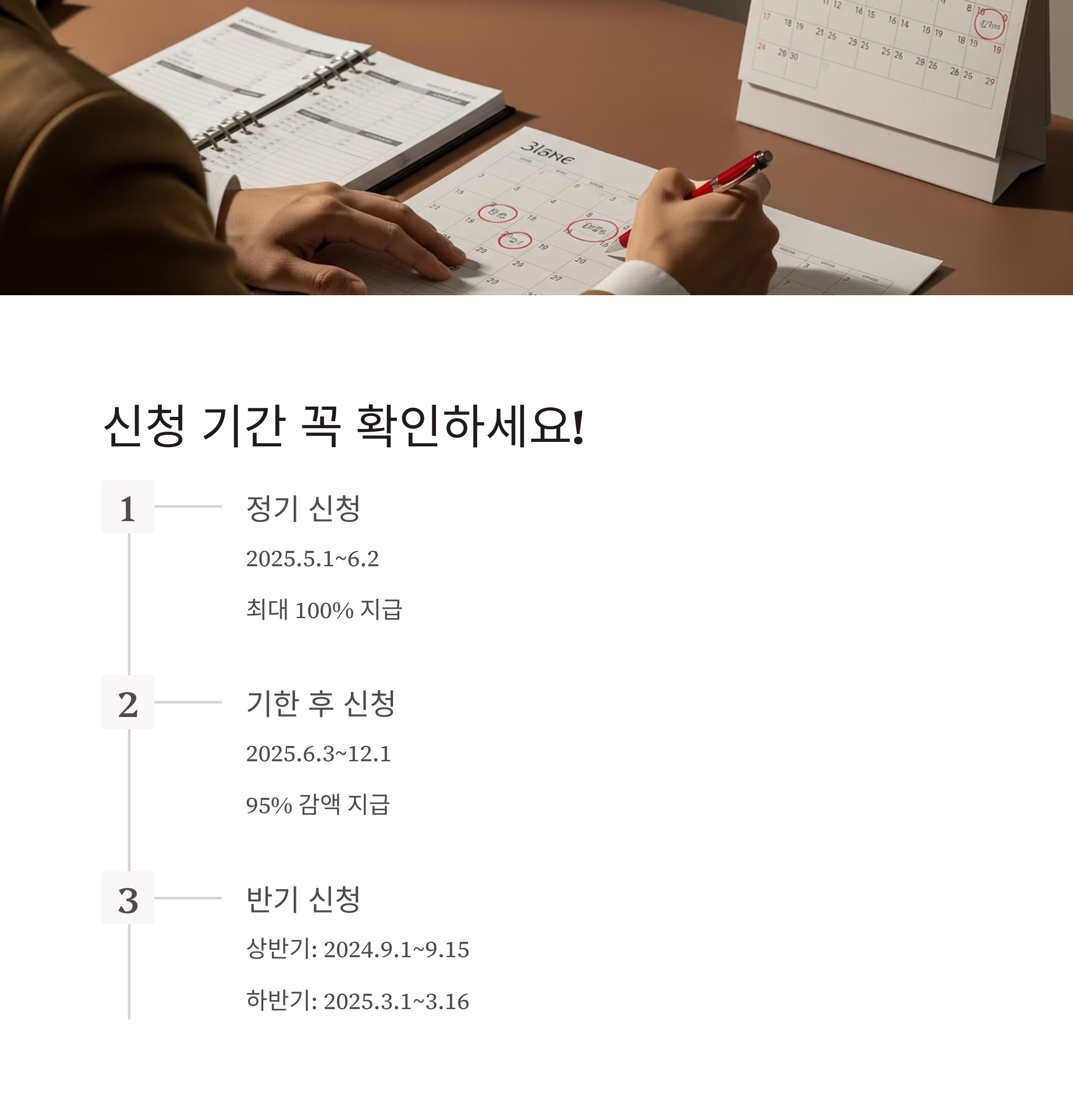 | 기한 후 신청 | 2025년 6월 3일 ~ 12월 1일 | 감액 지급(95%) |