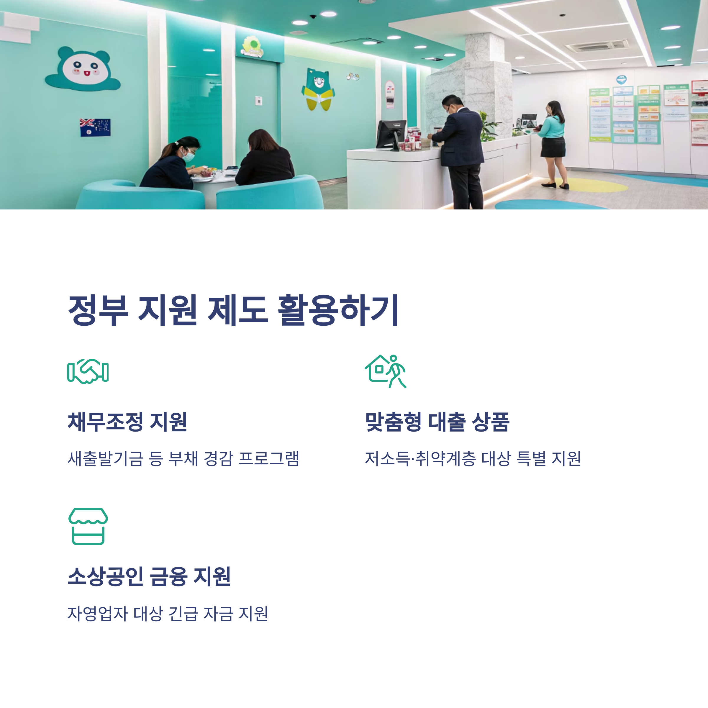 상담센터에서는 이자 부담을 줄일 수 있는 정부 제도나 금융 프로그램을 안내해 줄 수 있습니다.