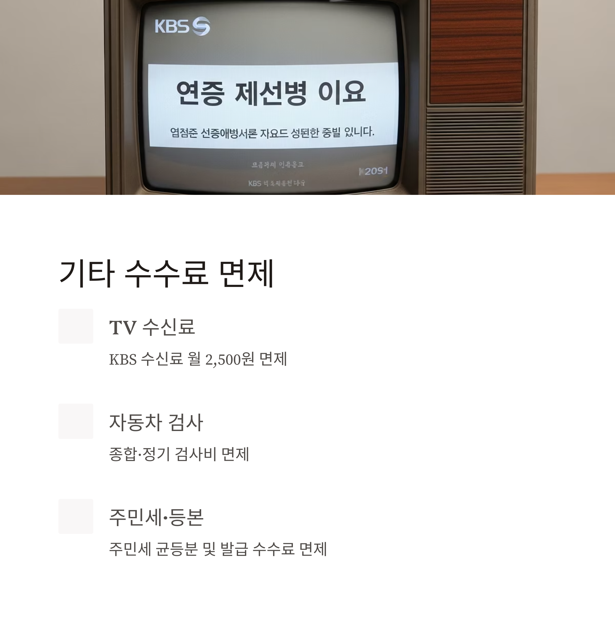 | TV 수신료 | KBS 수신료 면제 (월 2,500원 수준) |