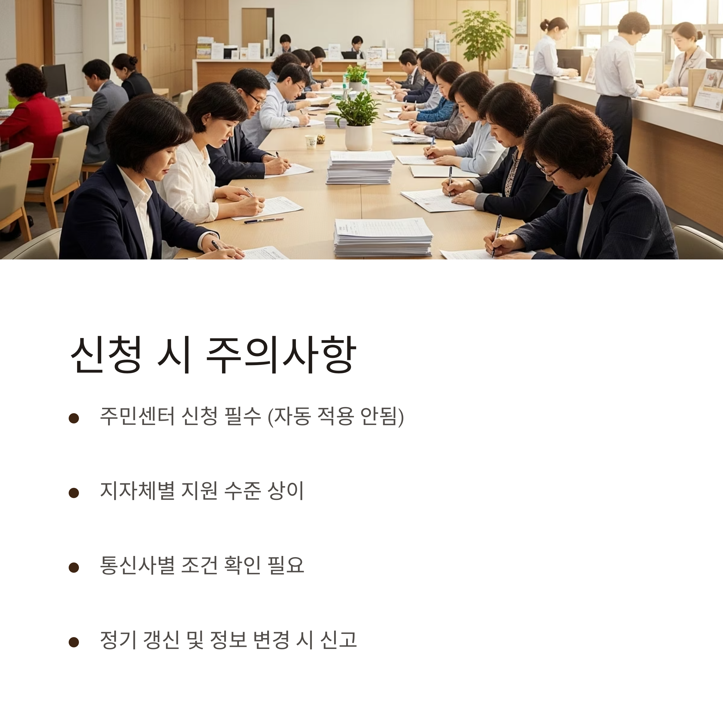 - 통신사별 조건 확인: 감면 가능 요금제·회선 수 등 상세 조건 존재