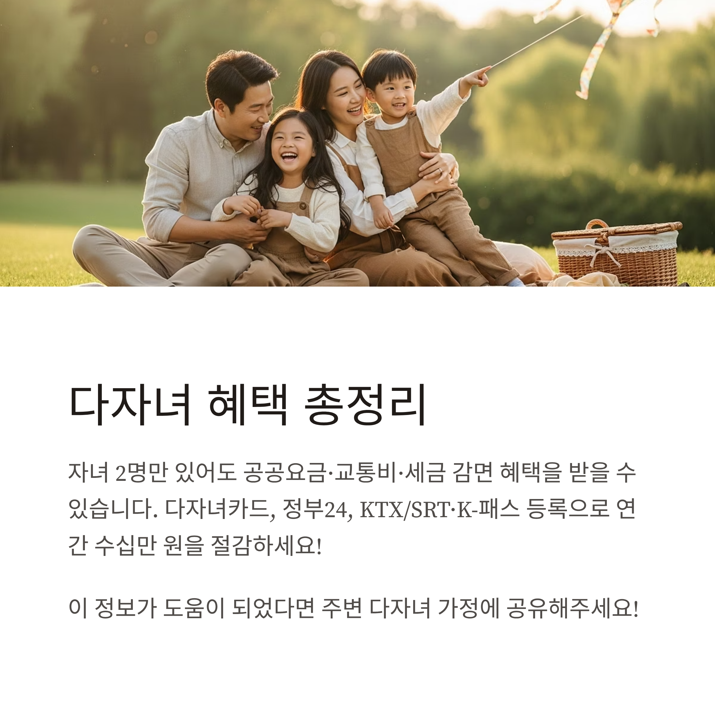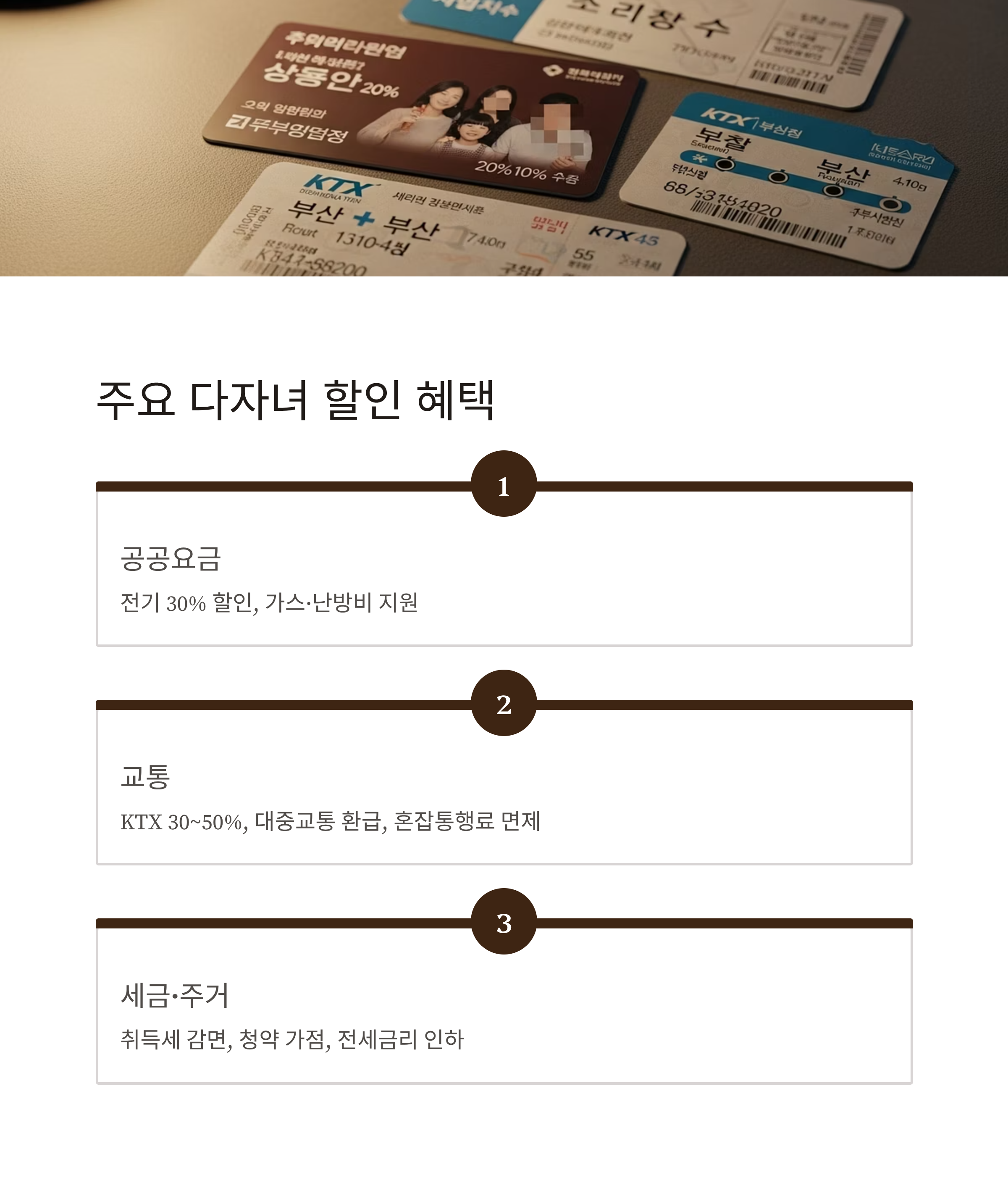 다자녀 할인 11가지 총정리! 교통·교육·세금까지 2025년 최신 혜택 안내