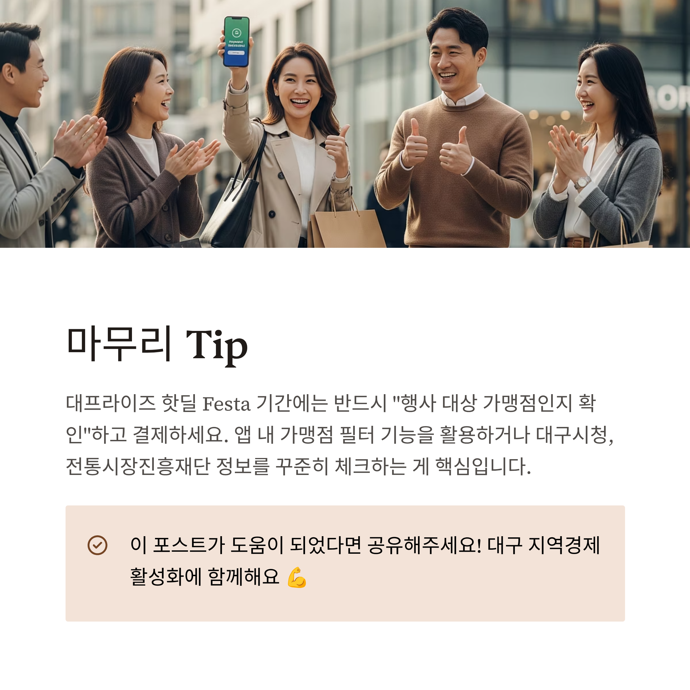 대프라이즈 핫딜 Festa 기간엔 꼭 “행사 대상 가맹점인지 확인”하고 결제하세요.