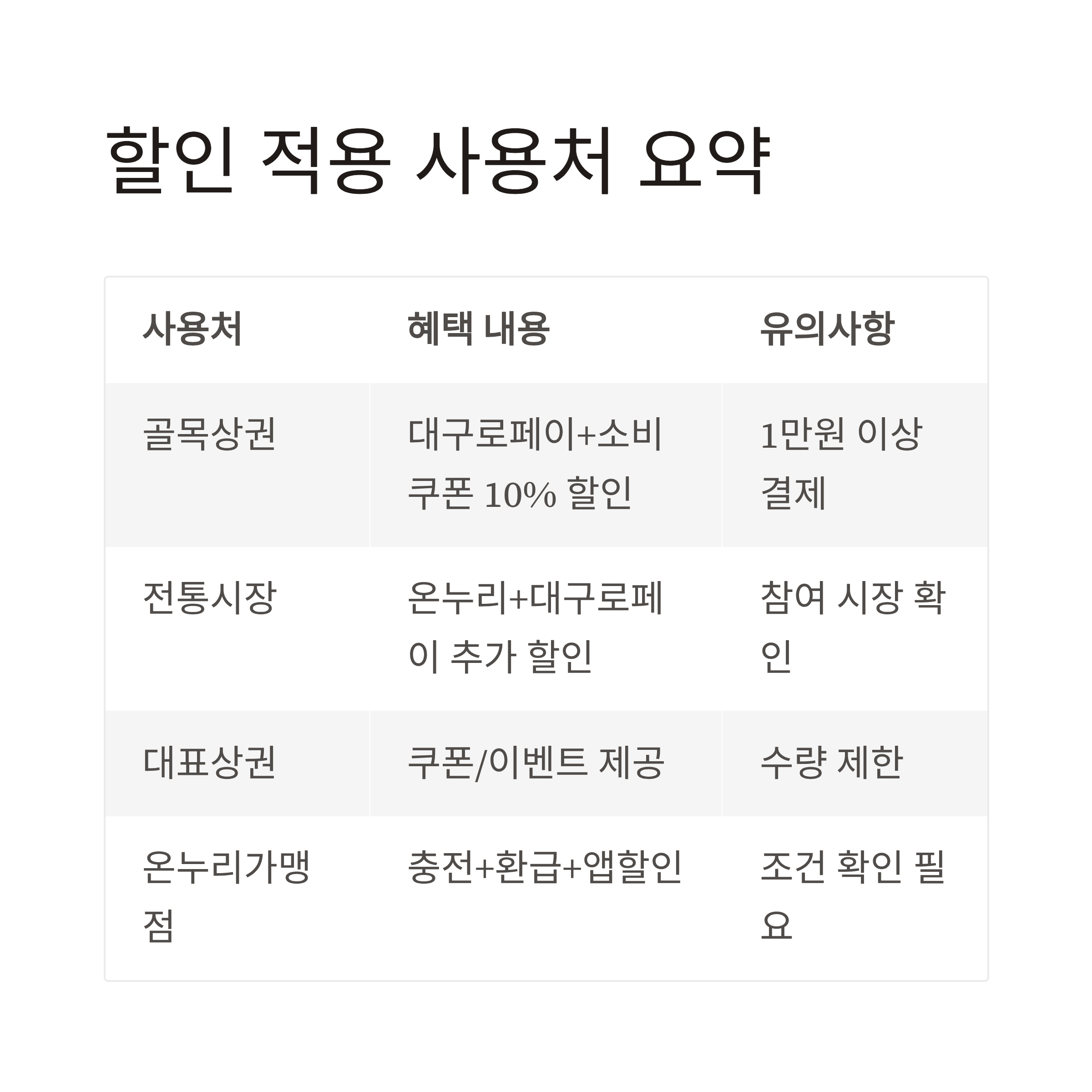 사용처 유형 혜택 내용 유의사항