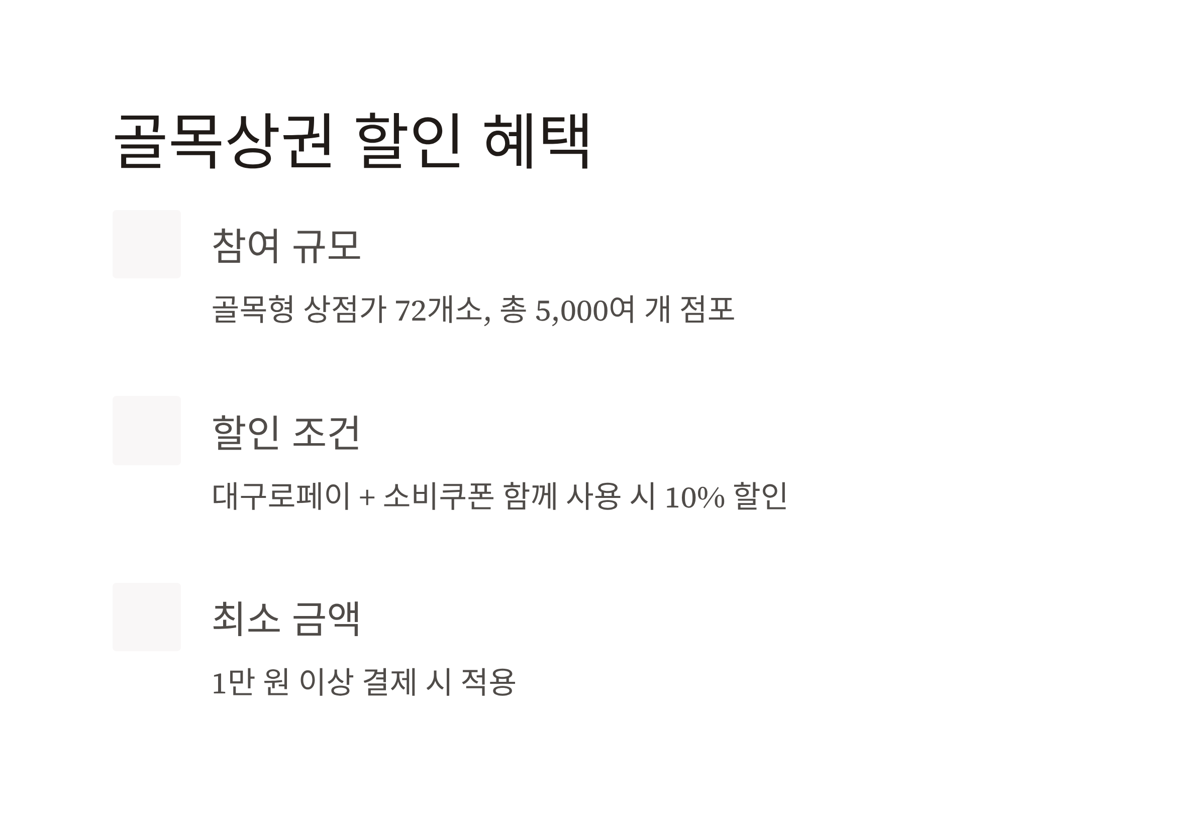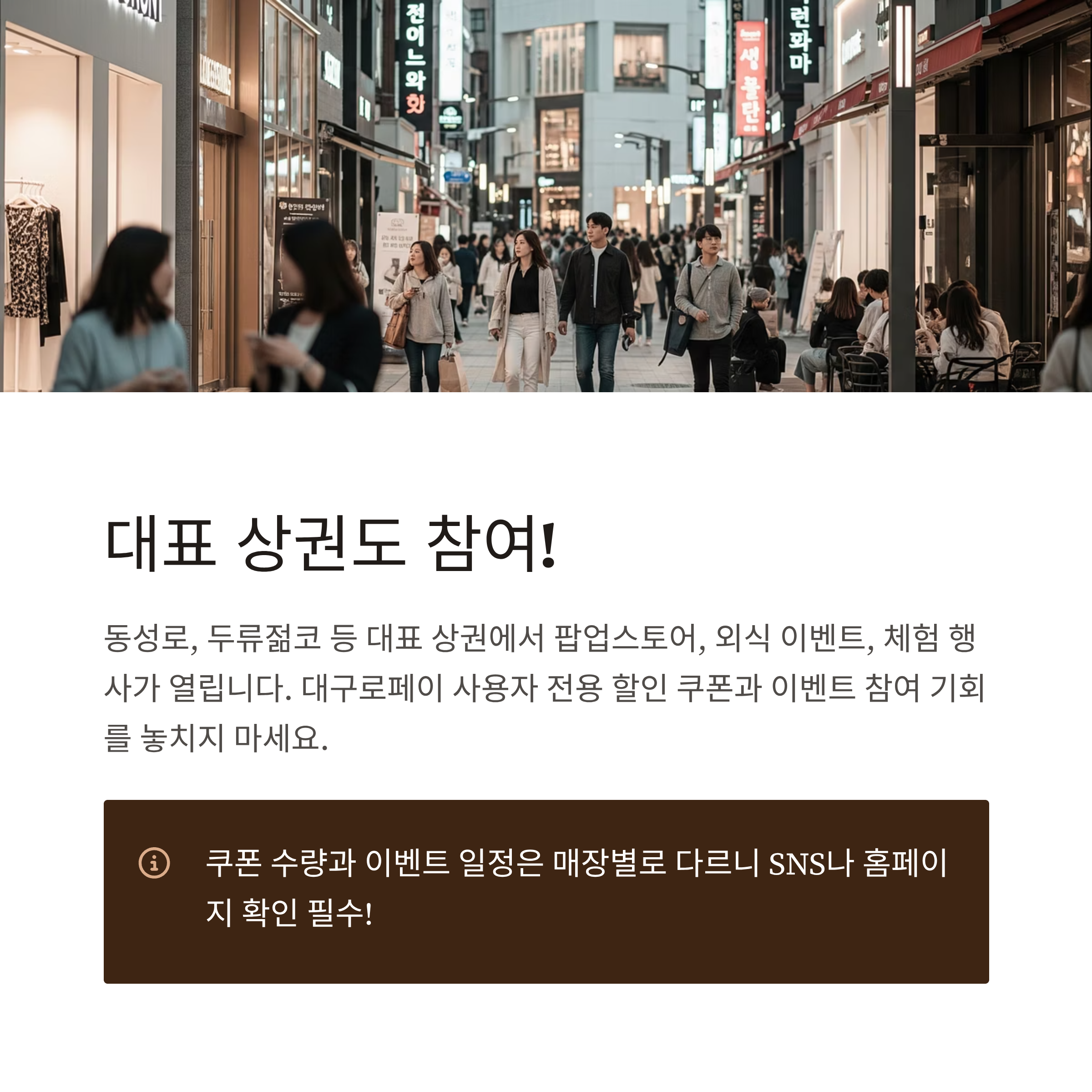 | 대표 상권 (동성로 등) | 대구로페이 이용 고객 대상 쿠폰/이벤트 제공 | 쿠폰 수량 제한, 매장별 상이 |