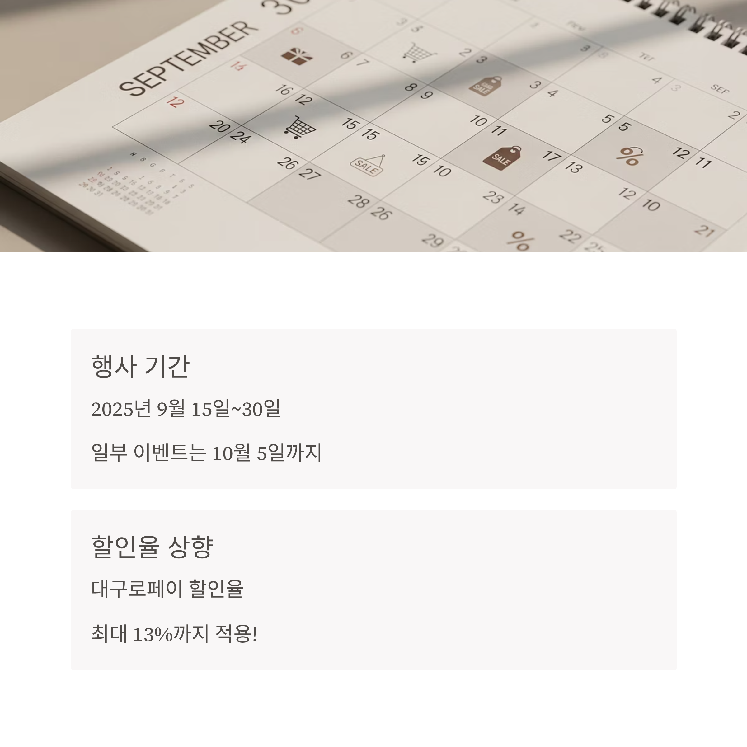 할인율 상향과 행사 기간 혜택을 모두 누릴 수 있어요.