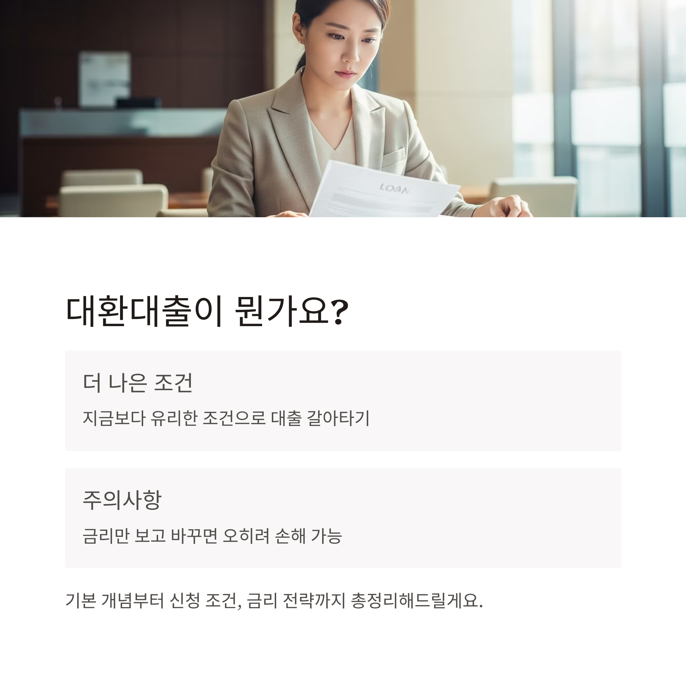 대환대출 뜻과 자격조건부터 금리 낮추는 법까지, 은행이 말 안 해주는 팁 총정리
