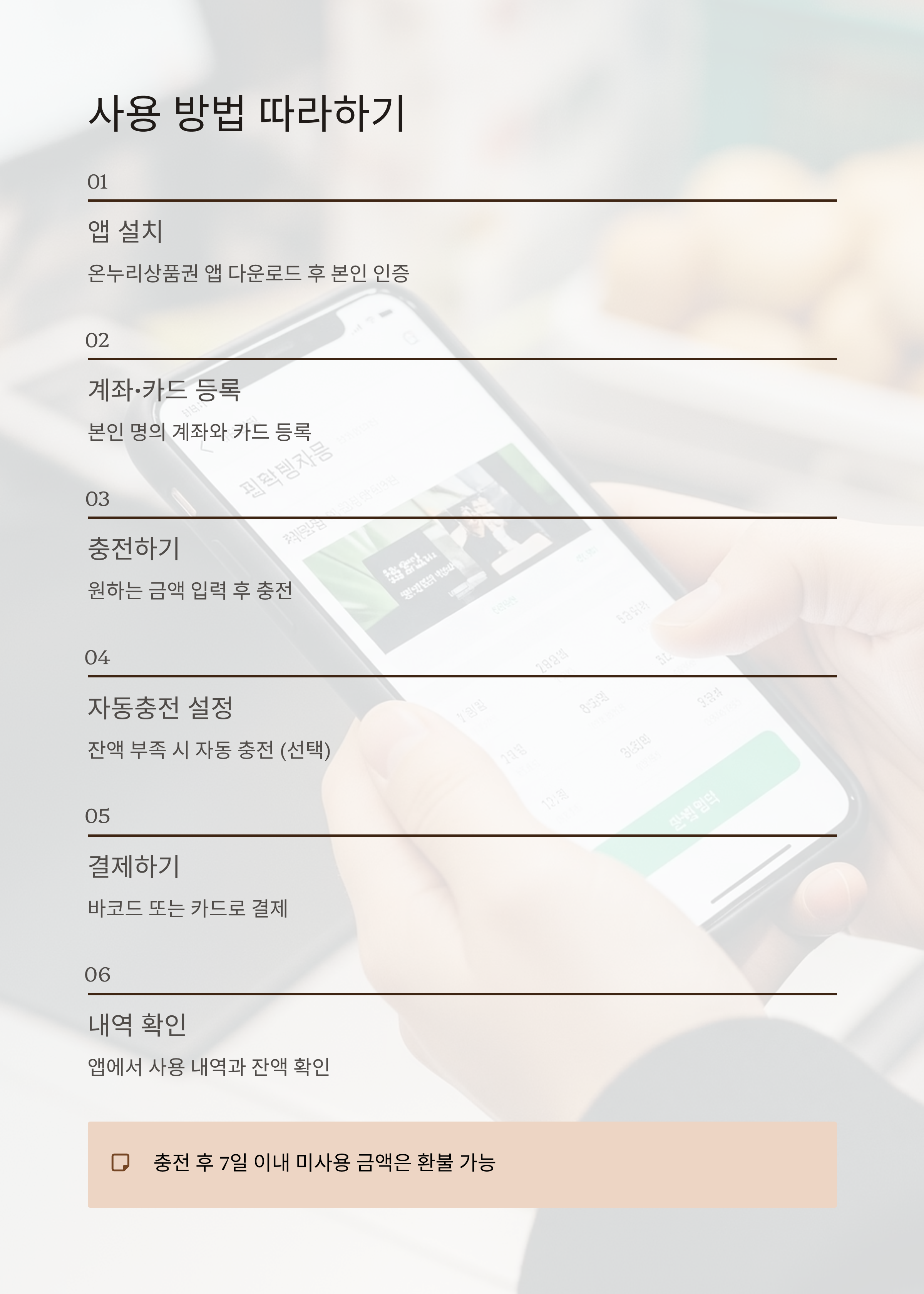 사용 방식 앱에서 바코드·QR 결제 또는 등록한 카드로 일반 결제처럼 사용 가능