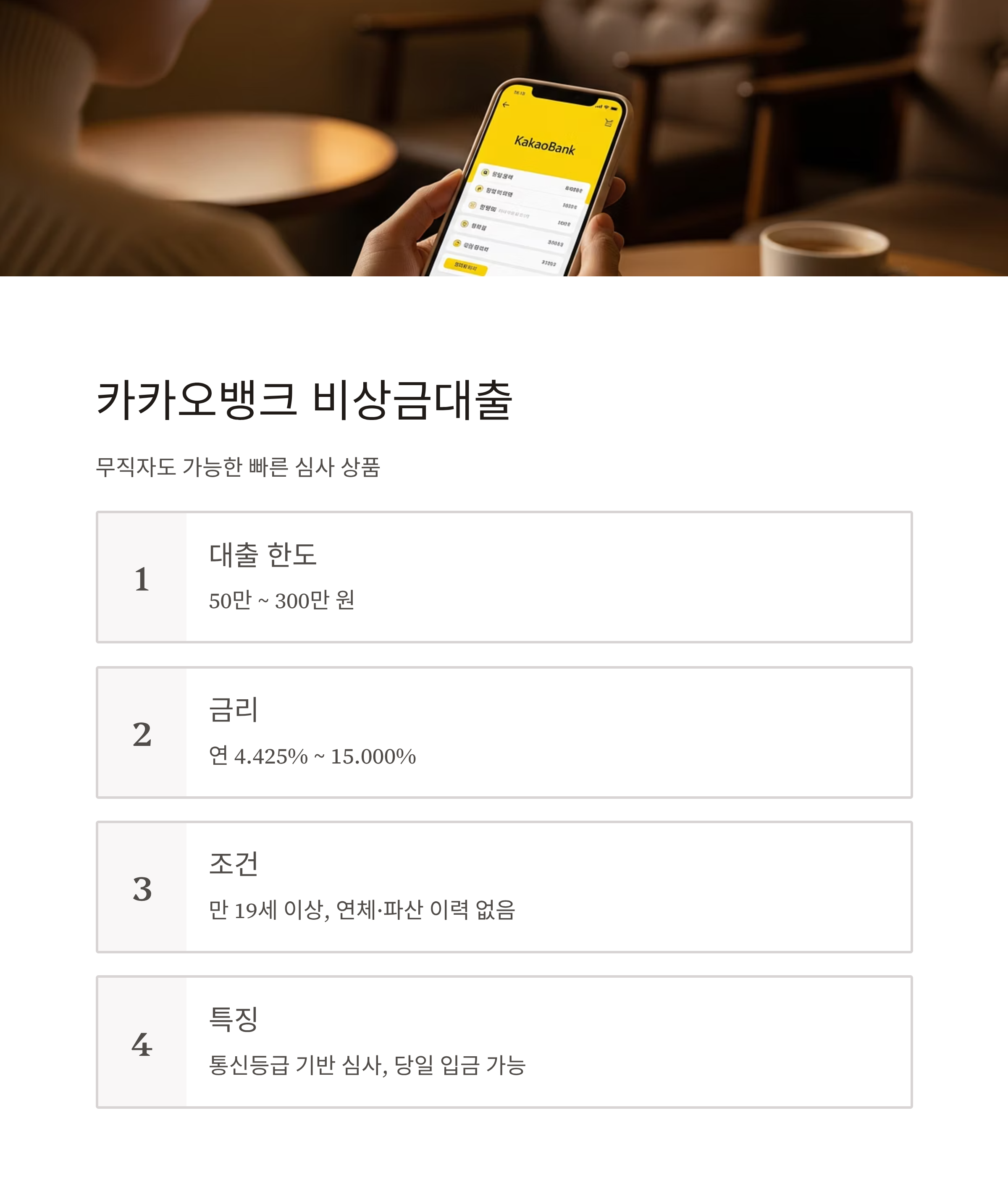 카카오뱅크 비상금대출 – 무직자도 가능, 빠른 심사