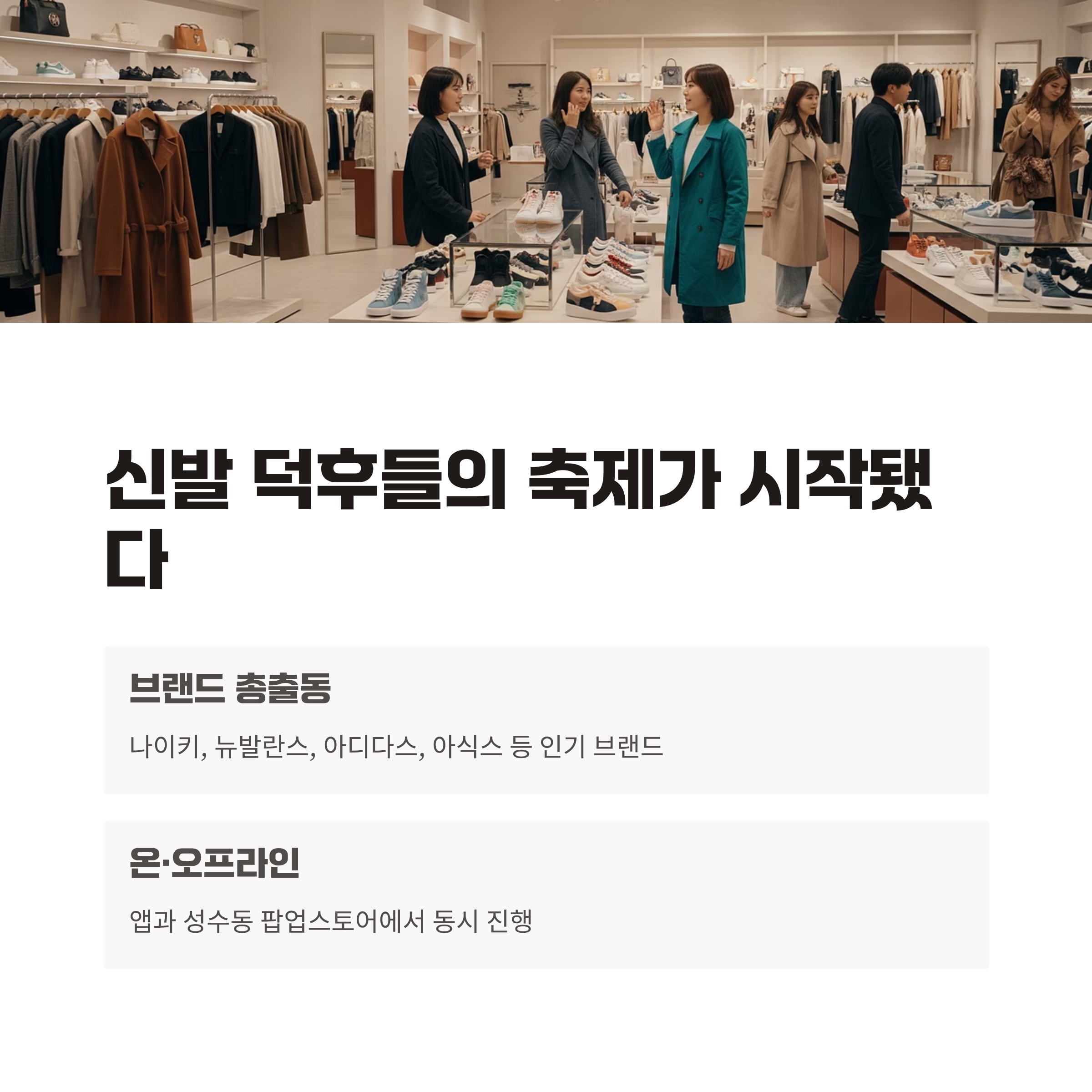 | 오프라인 체험 혜택 | 신발 착용, 사진 촬영, 현장 이벤트, 쿠폰 응모 등 가능 |