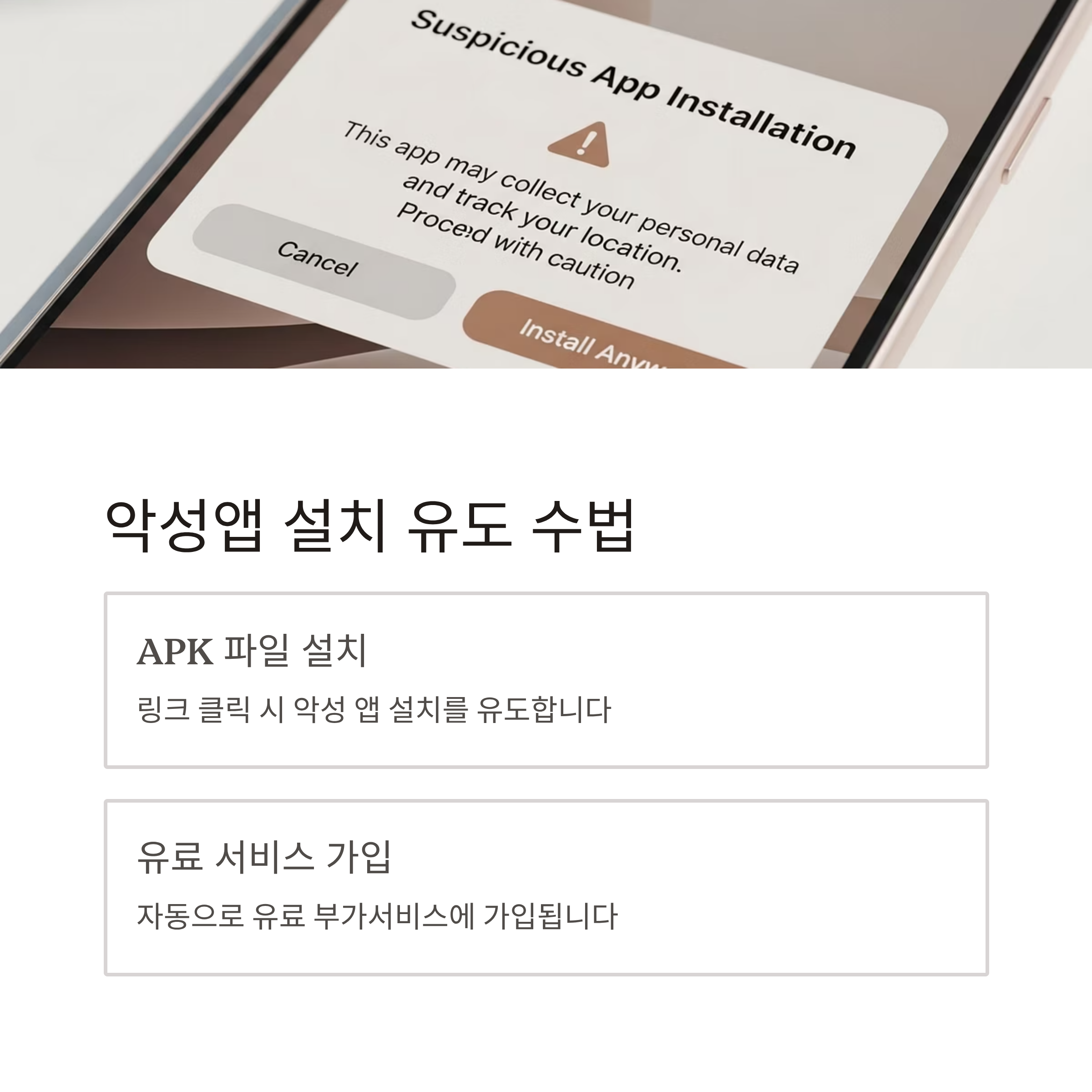악성앱 유도와 유료 결제 자동가입 수법도 주의