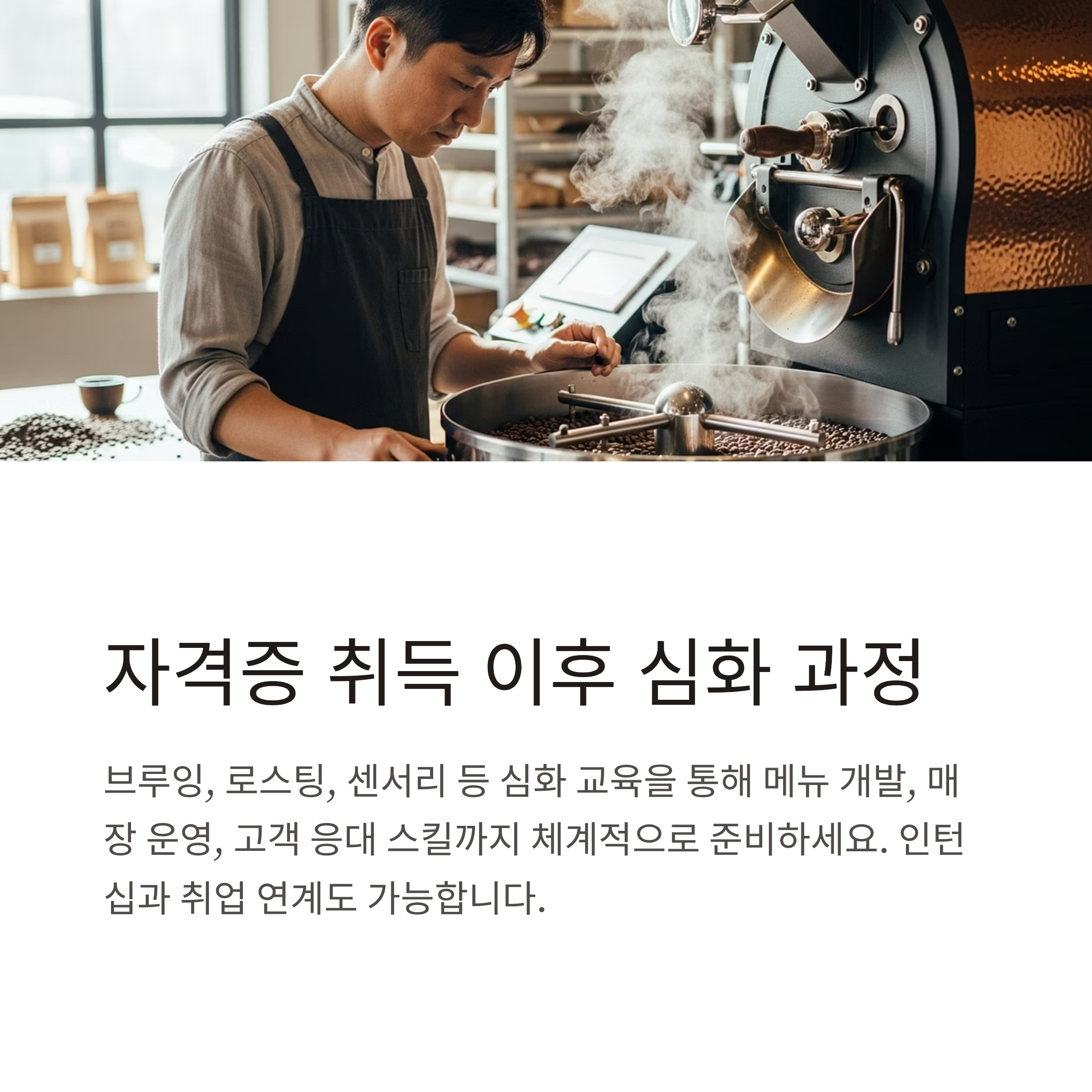 | 5단계 | 실무 심화 교육 (브루잉, 로스팅 등) 수강 |