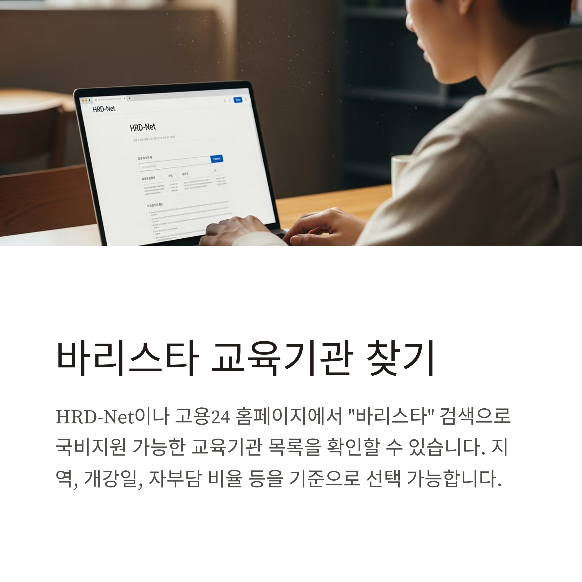 | 2단계 | HRD-Net에서 바리스타 국비 과정 탐색 |