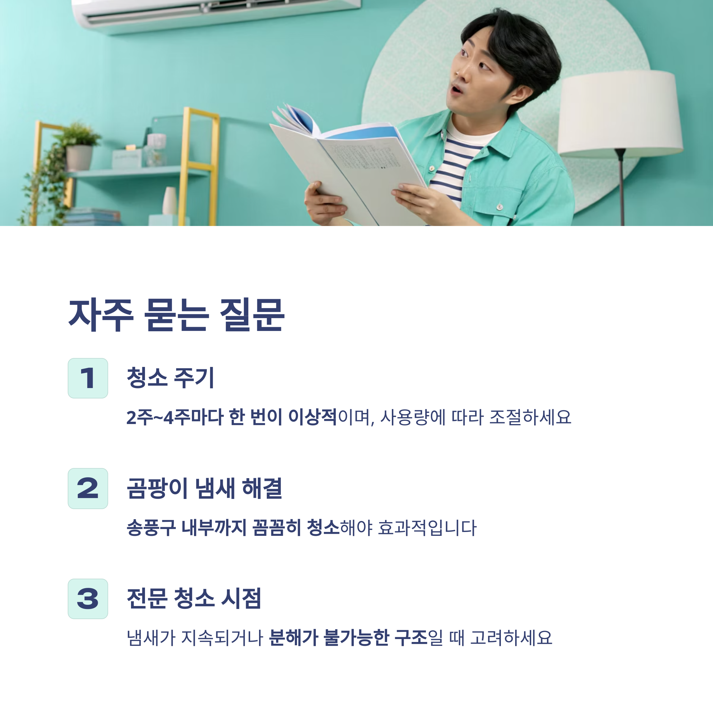 정기적인 관리만이 냄새와 전기요금, 건강 문제까지 막는 핵심입니다.
