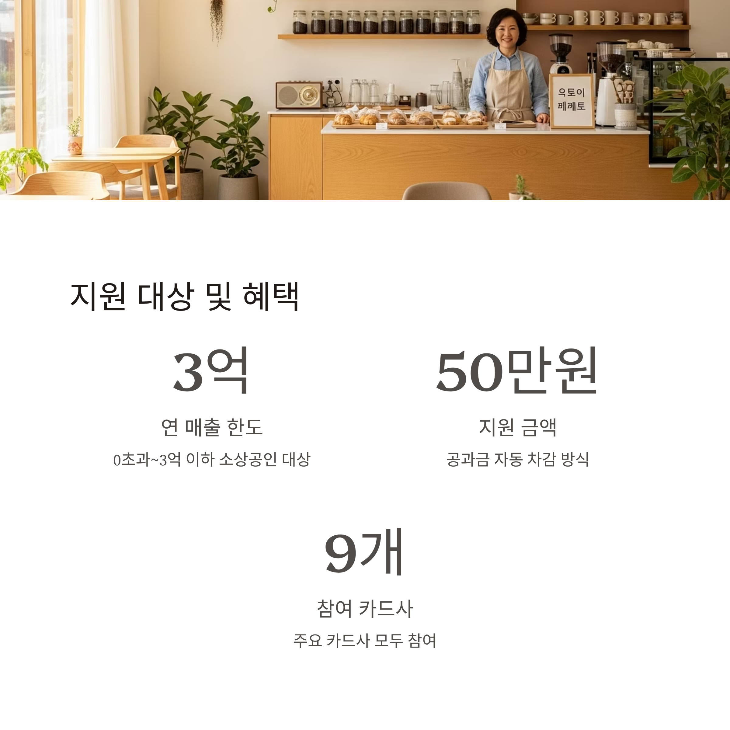 | 대상 | 연 매출 0초과~3억 이하 소상공인(폐업·유흥·가상자산업 제외) |
