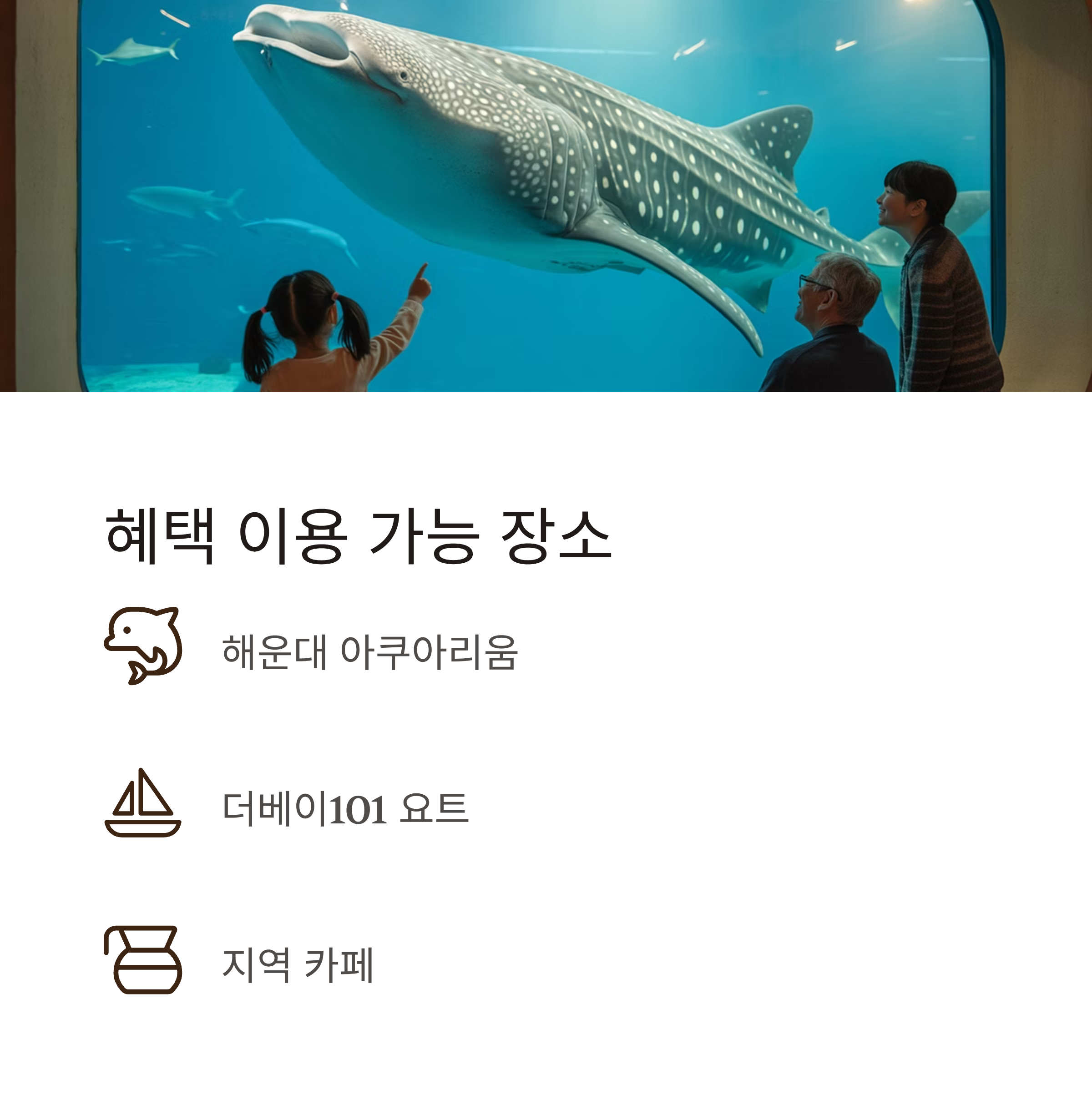 | 사용 가능 시설 | 키자니아, 더베이101 요트, 해운대 아쿠아리움, 지역 카페 등 총 17곳 |
