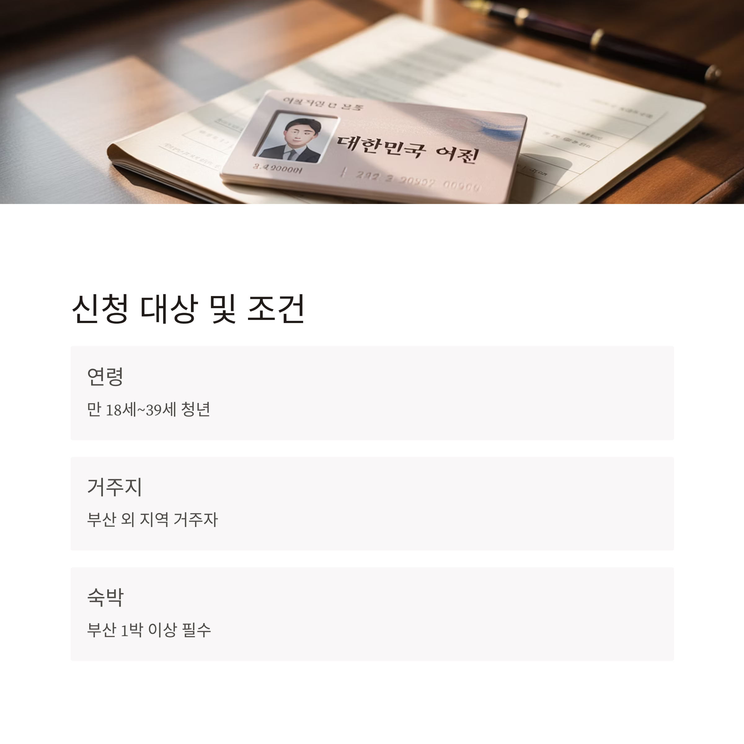 | 거주 요건 | 부산 외 지역 거주자 (외국인·유학생 제외) |