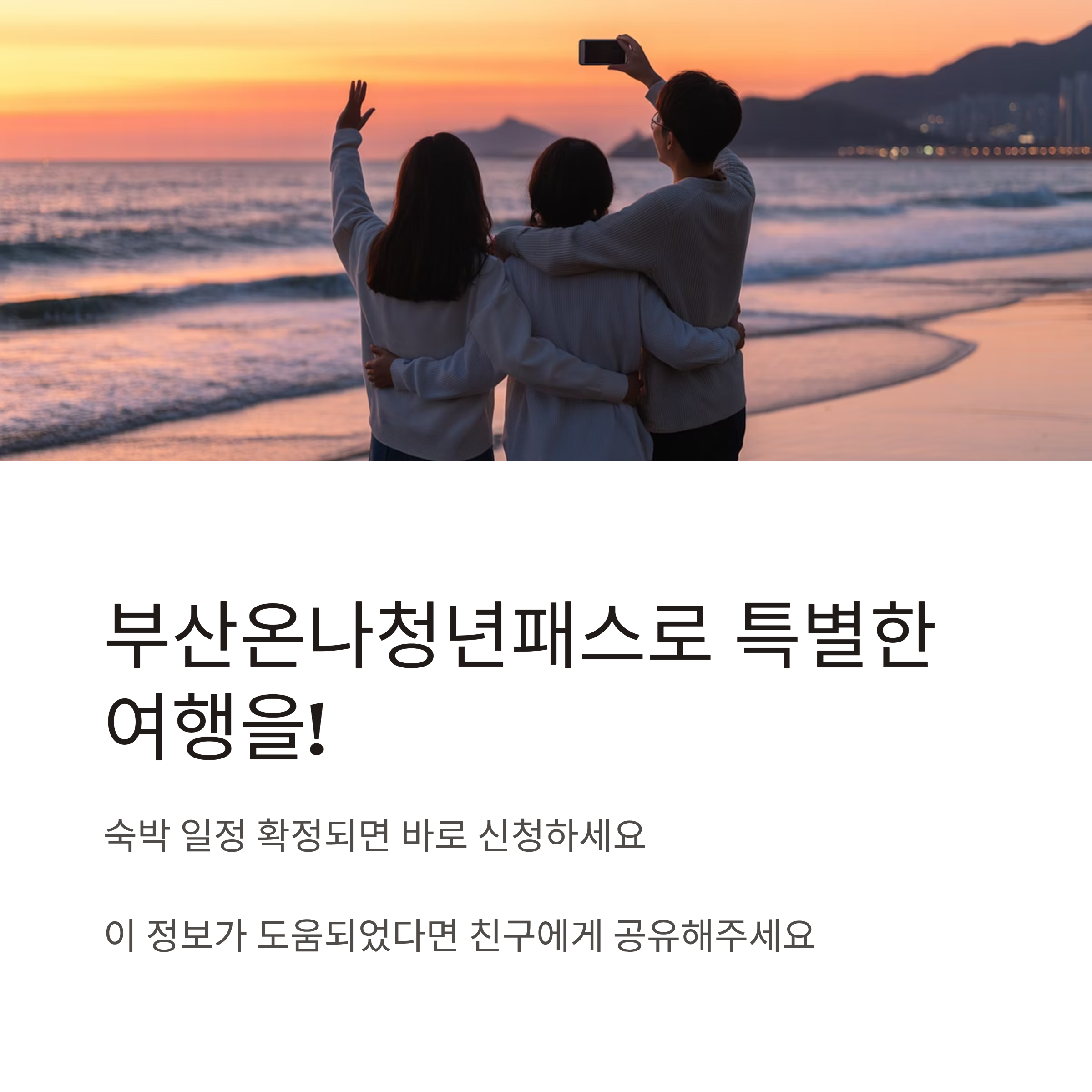 | 신청 조건 | 부산 1박 이상 숙박 예약 확인 필요, 숙소명·날짜 명시 필수 |
