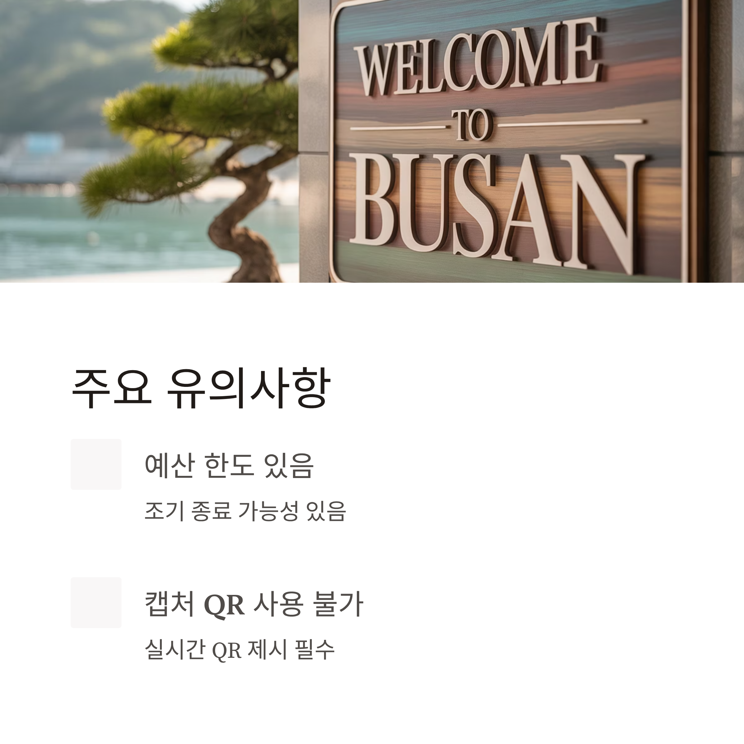 | 숙박 조건 | 부산에서 1박 이상 숙박 필수 (예약확인서류 첨부 필요) |