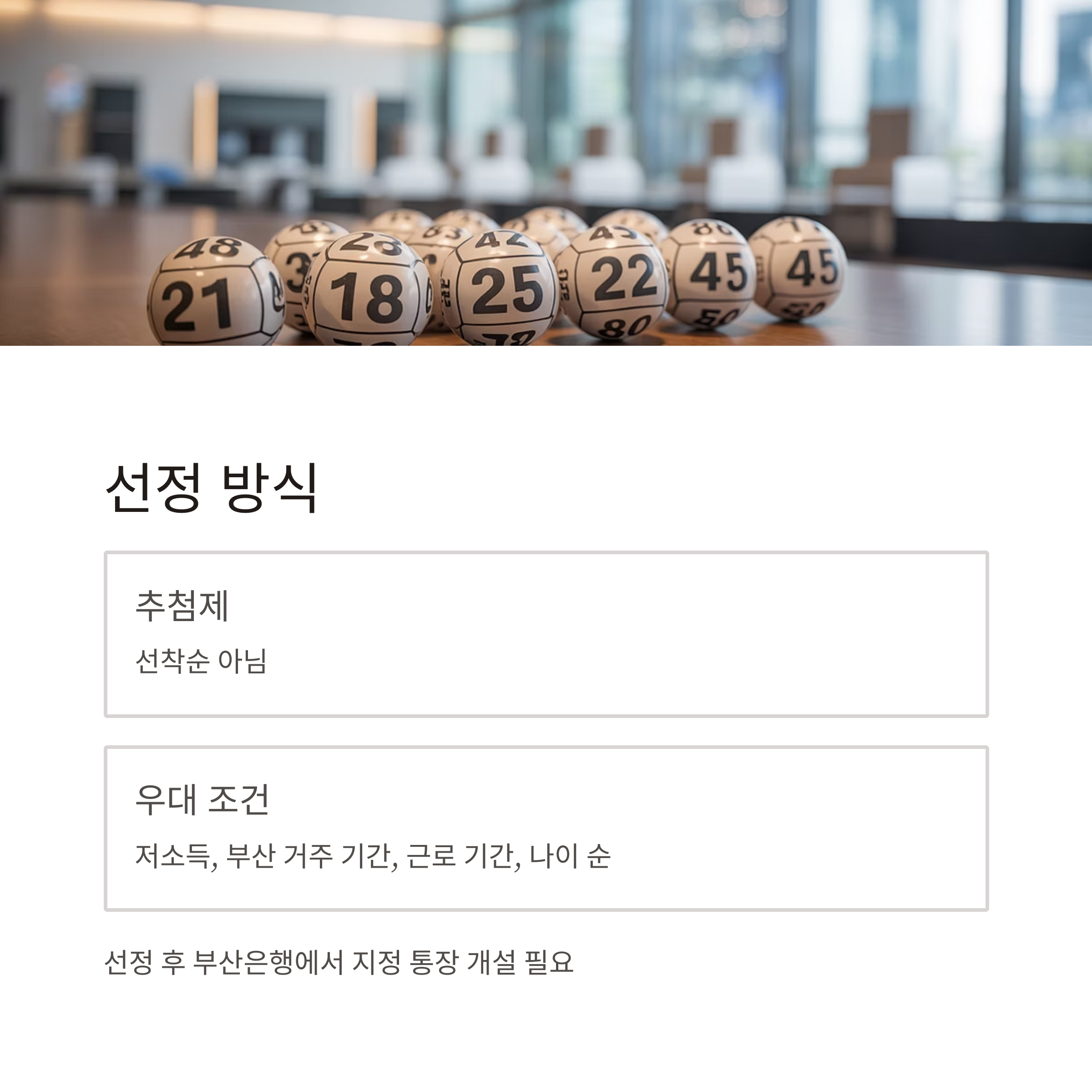 선정 방식 | 선착순 아님, 추첨제 (우대 기준 일부 반영) |