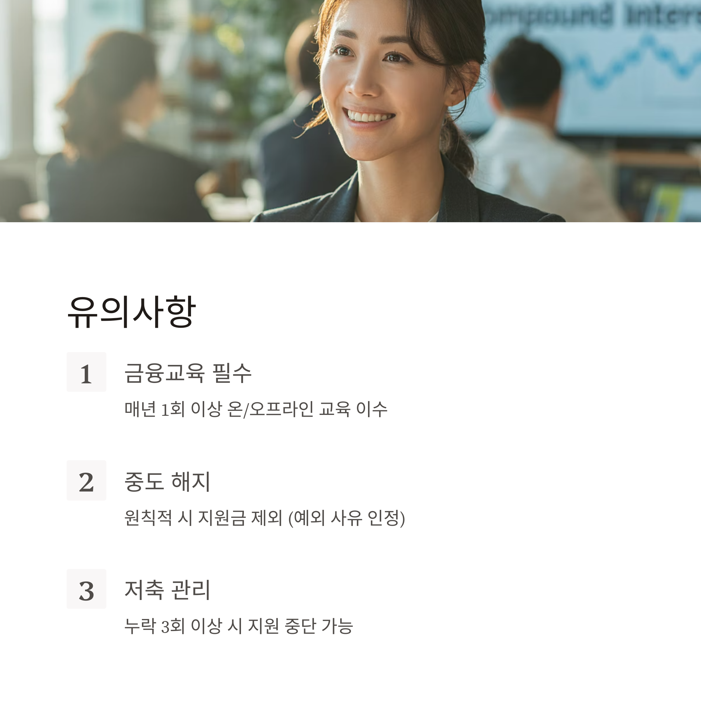 - 저축 누락 3회 이상 시 지원 중단될 수 있으므로 자동이체 설정 추천