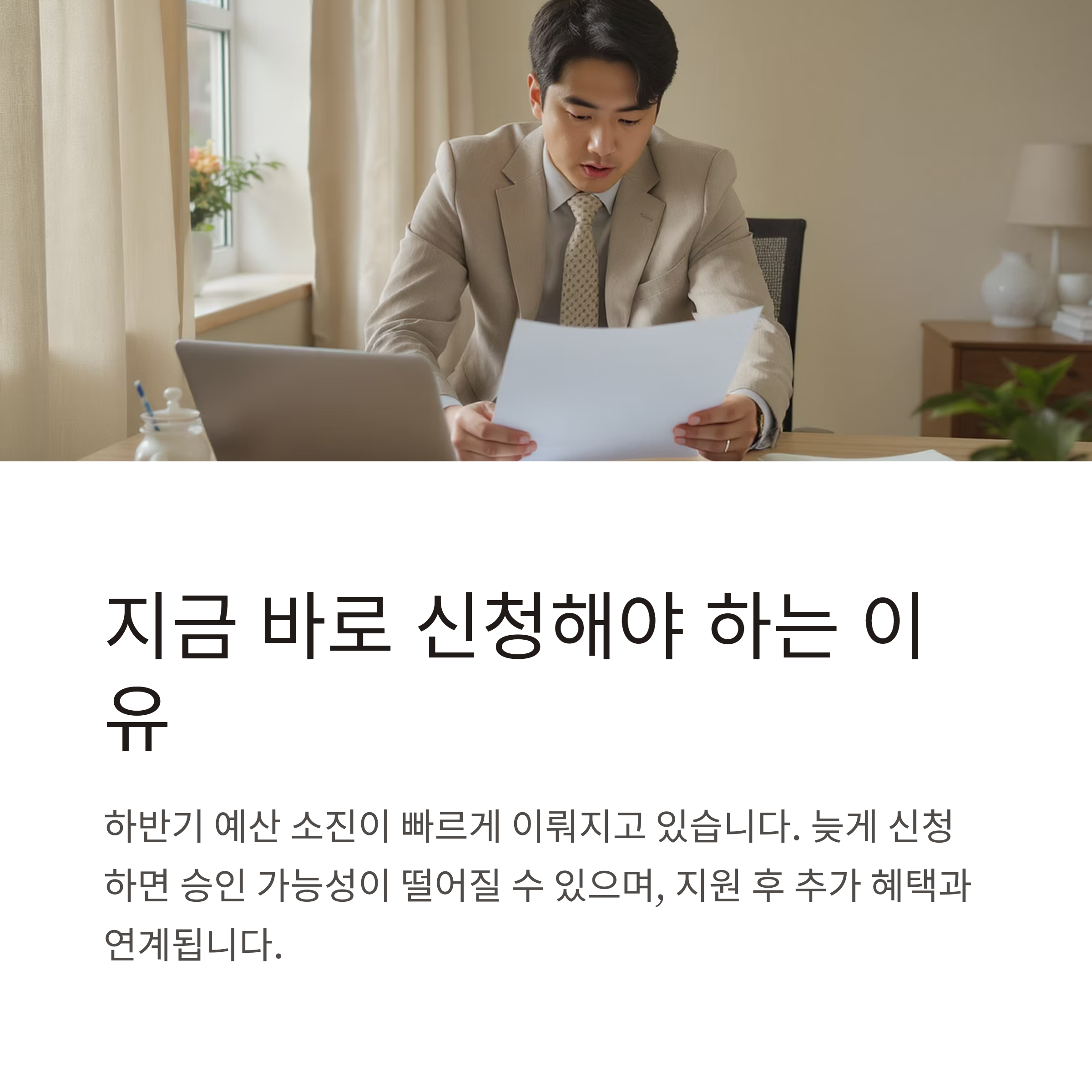 지금 신청하는 것이 단순 수혜를 넘는 성장 기반 마련으로 이어질 수 있습니다.