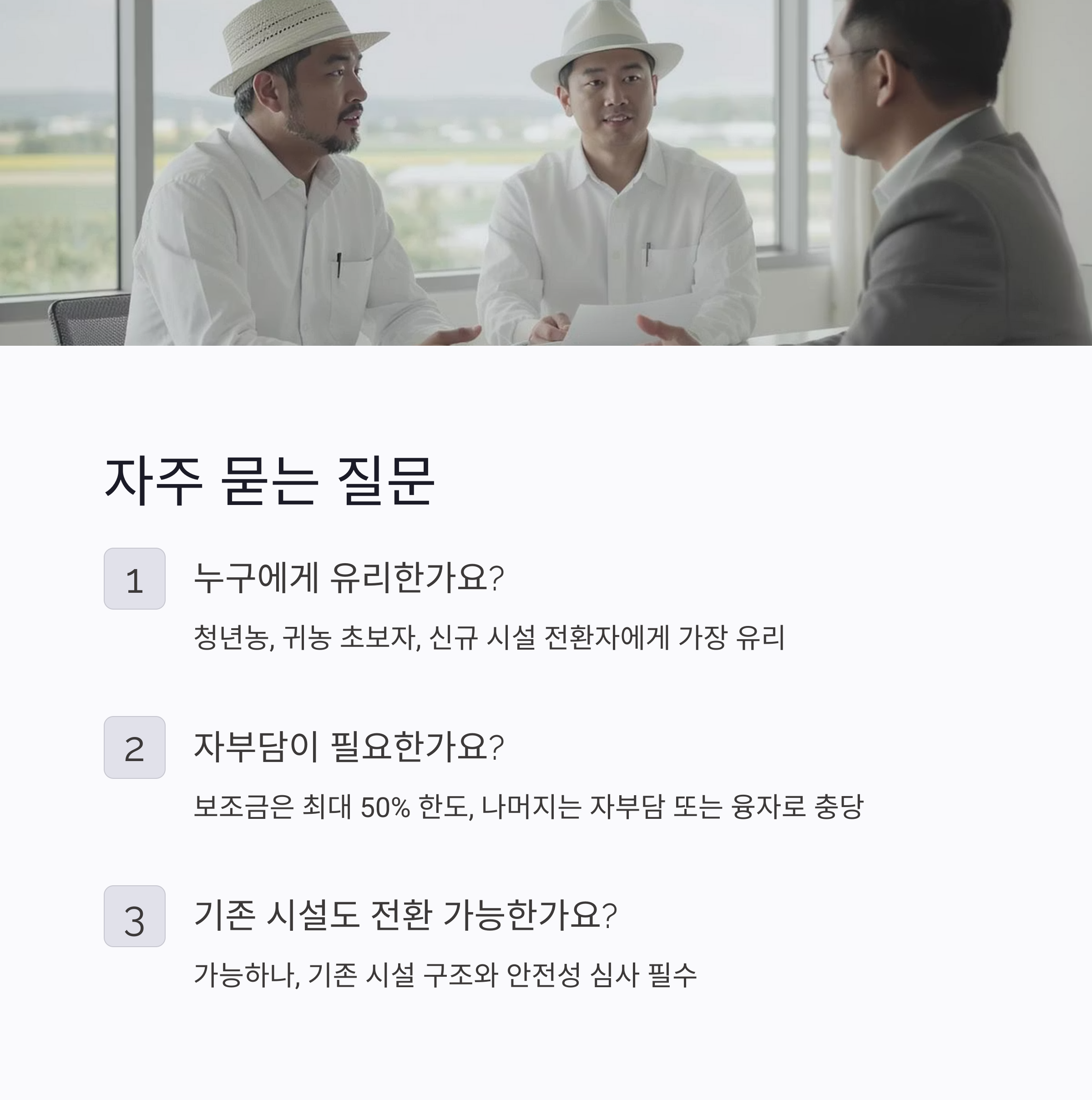 기존 시설도 스마트팜으로 전환할 수 있나요? 가능합니다. 단, 기존 시설 구조와 안전성 심사를 반드시 통과해야 합니다.