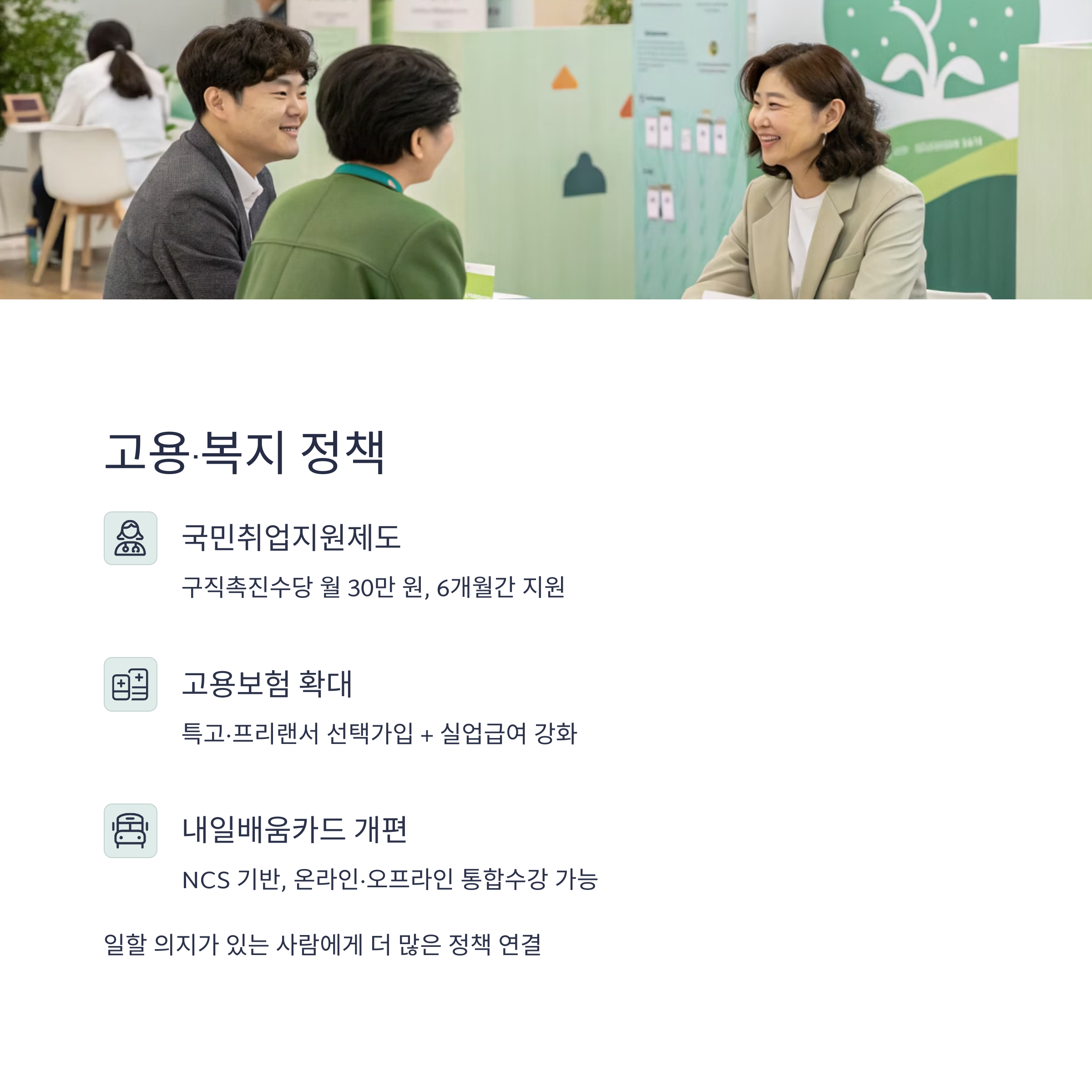 🔍 5. 고용·복지 정책 – ‘일하는 복지’ 기조 강화