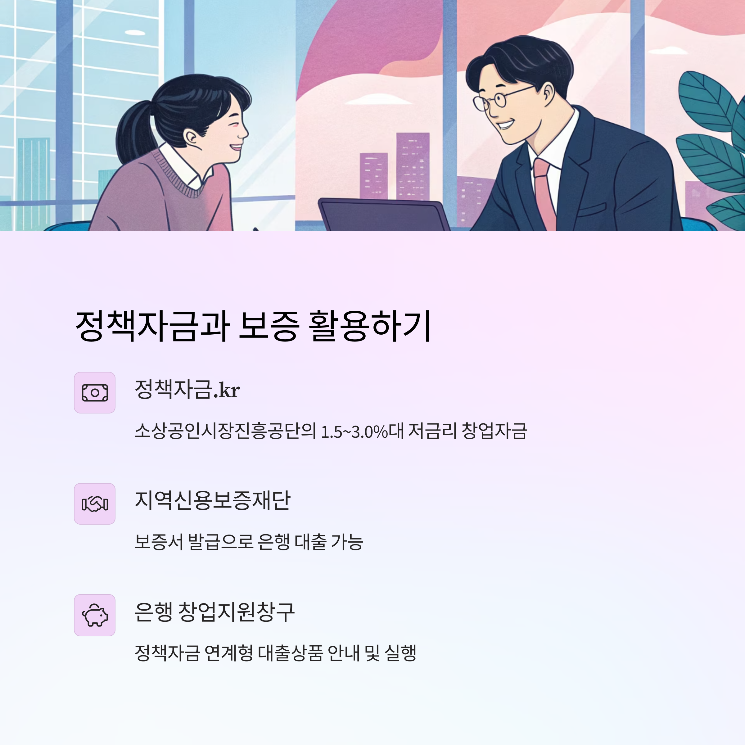 🏦 4. 무리한 대출보다 '정책자금 + 보증' 먼저 확인