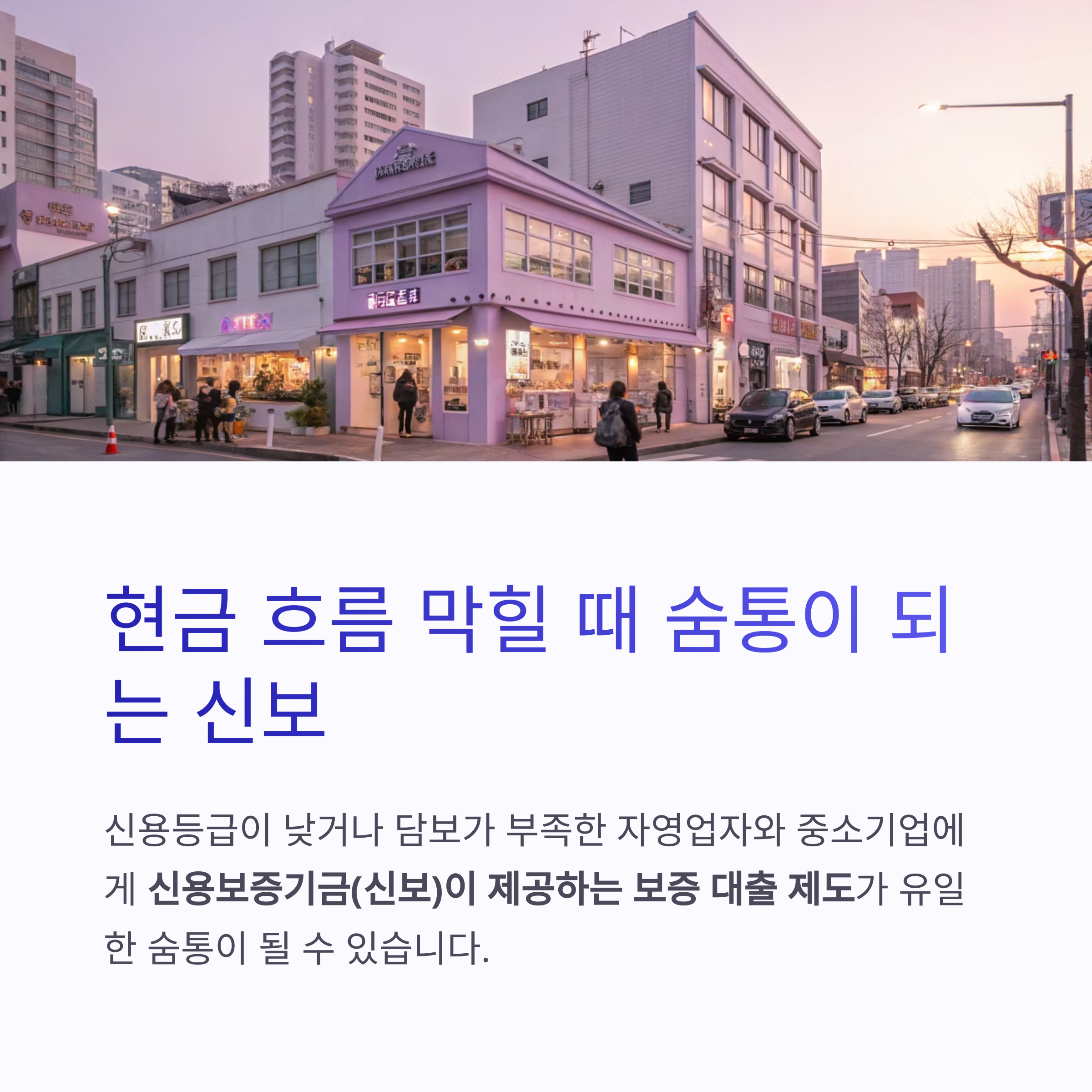 신용보증기금(신보)이 제공하는 보증 대출 제도가 유일한 숨통이 되기도 합니다.