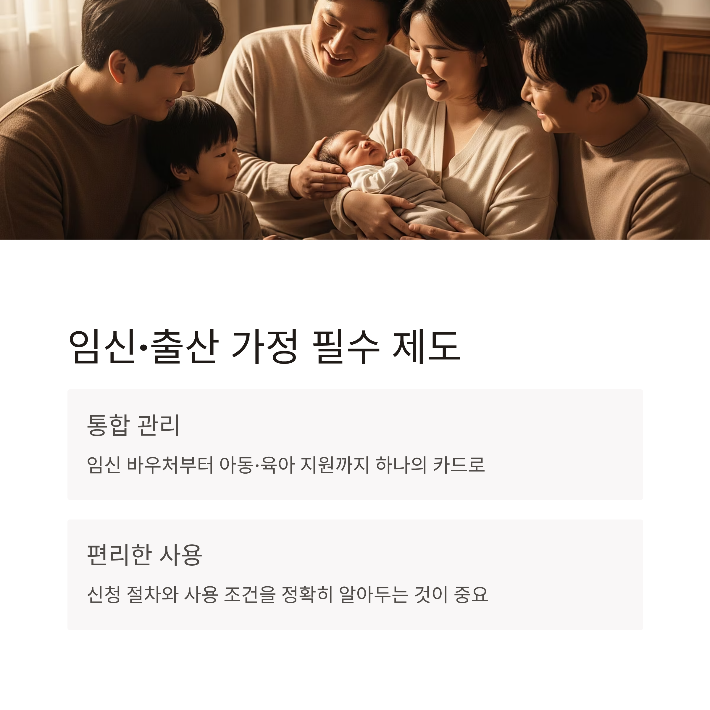 임신과 출산을 준비하는 가정에 꼭 필요한 제도가 바로 국민행복카드입니다. 임신 바우처부터 아동·육아 지원까지 하나의 카드로 통합 관리할 수 있어 편리하지만, 신청 절차와 사용 조건을 정확히 알아두는 것이 중요합니다. 여기서는 체크카드 기준으로 발급, 신청, 사용법과 주요 바우처 종류까지 정리했습니다.