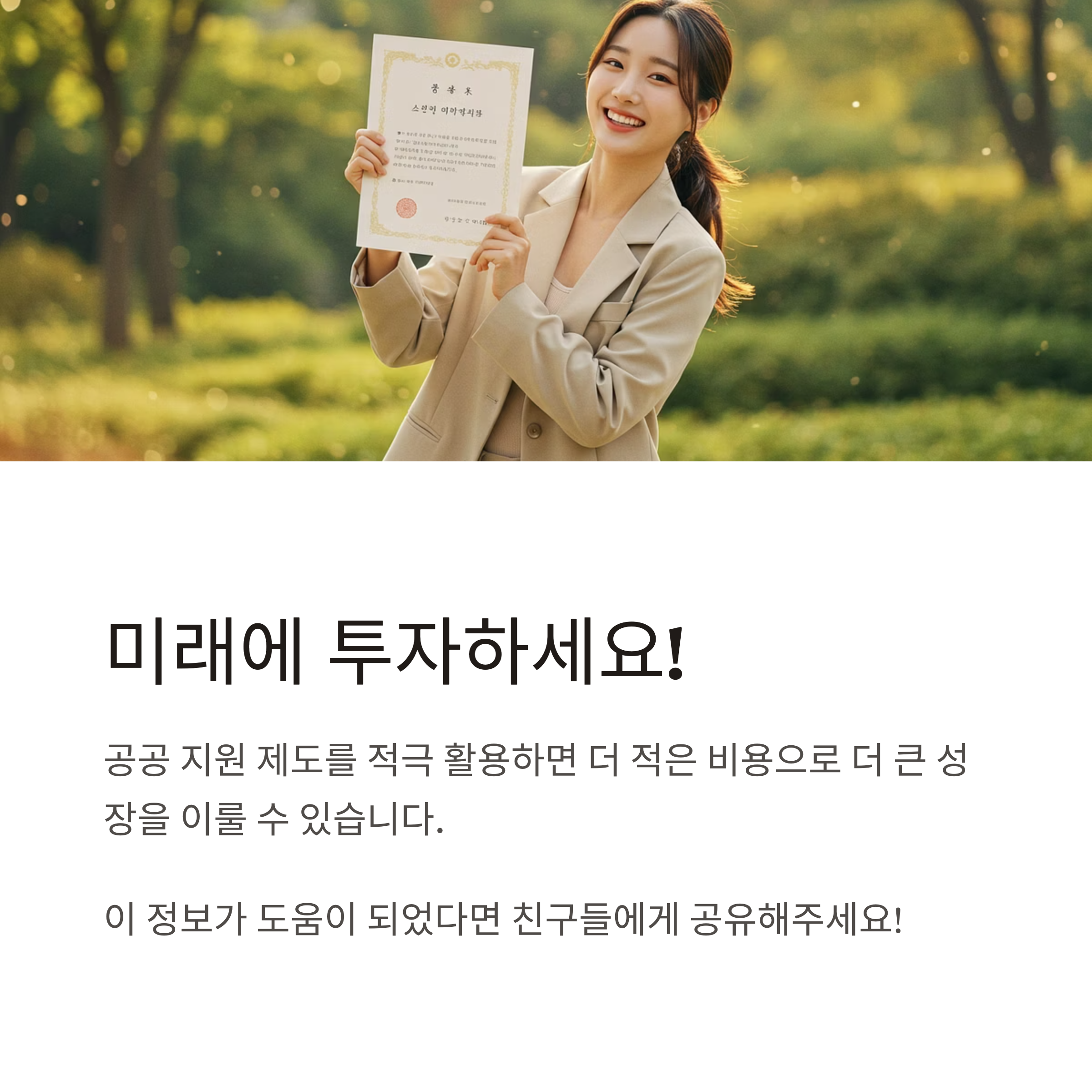 공공 지원 제도를 적극 활용하면 더 적은 비용으로 더 큰 성장을 이룰 수 있습니다.