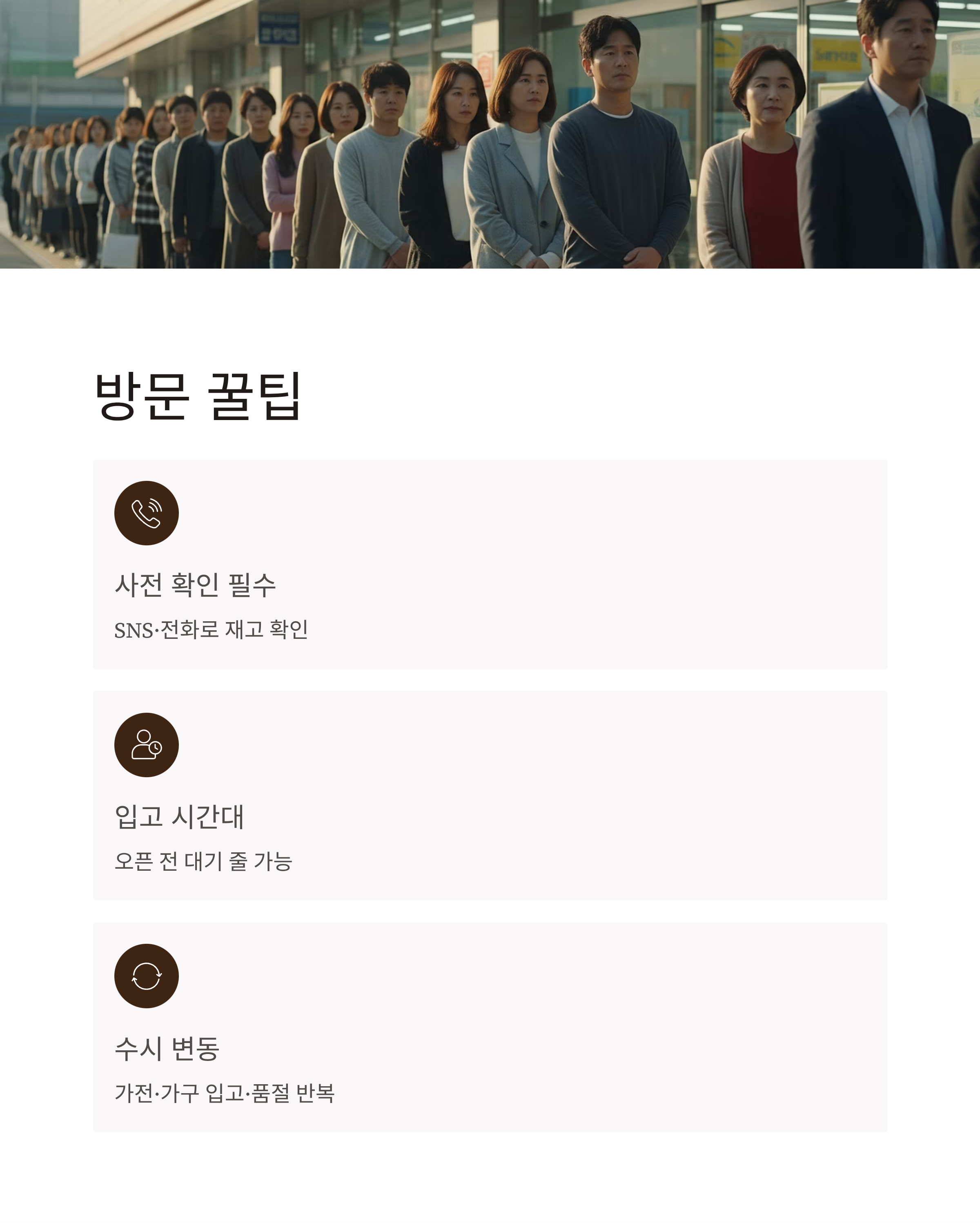 방문 전 직접 재고 확인과 시간 확인은 필수입니다.