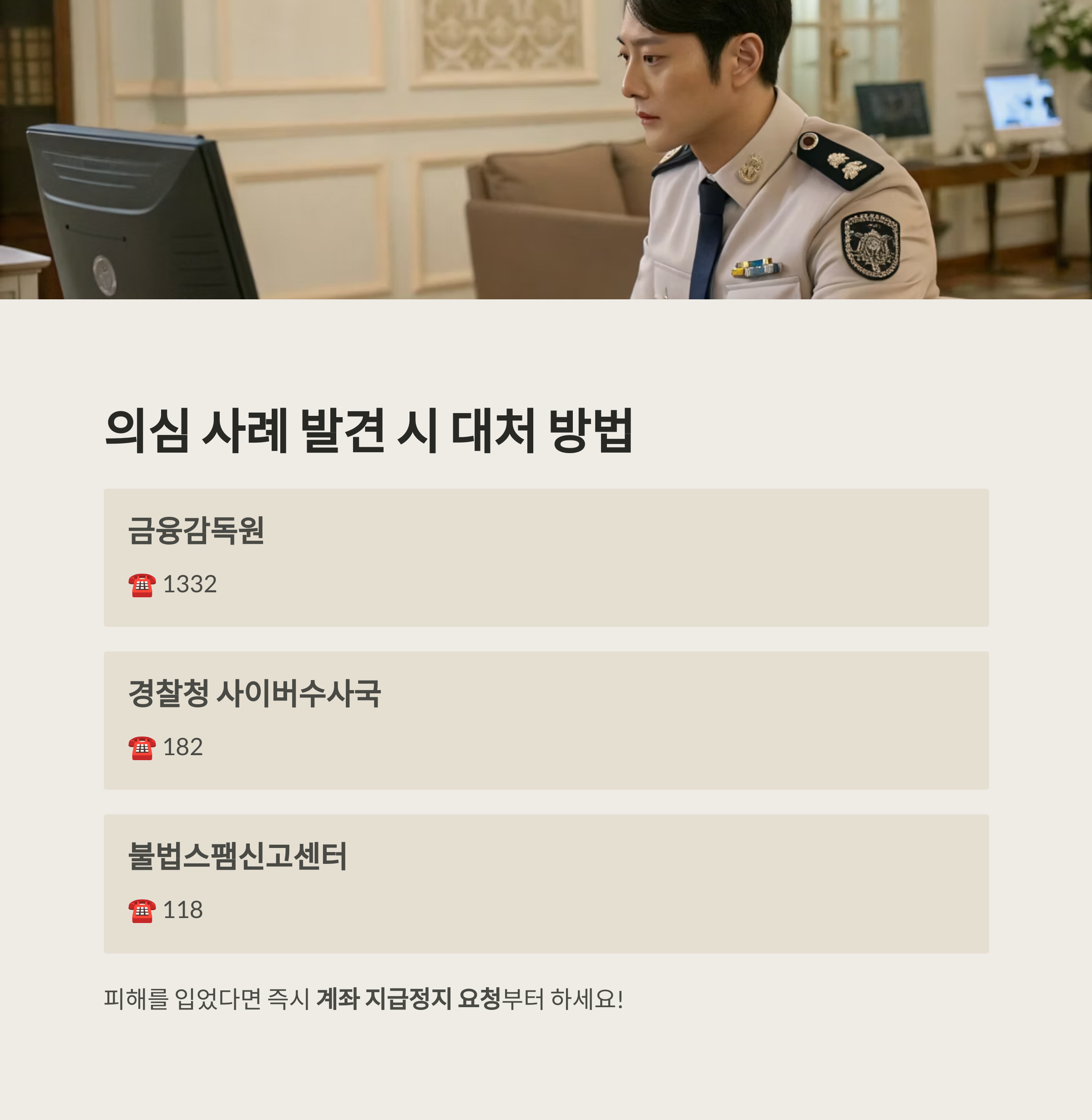 ✅ 피해를 입었다면 즉시 계좌 지급정지 요청부터 선제적으로!