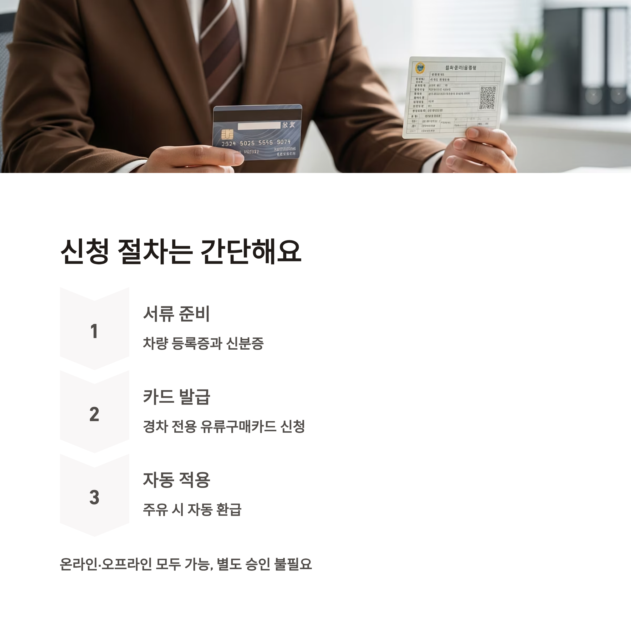 - 카드사(롯데, 신한, 현대 등)에서 경차 전용 유류구매카드 발급