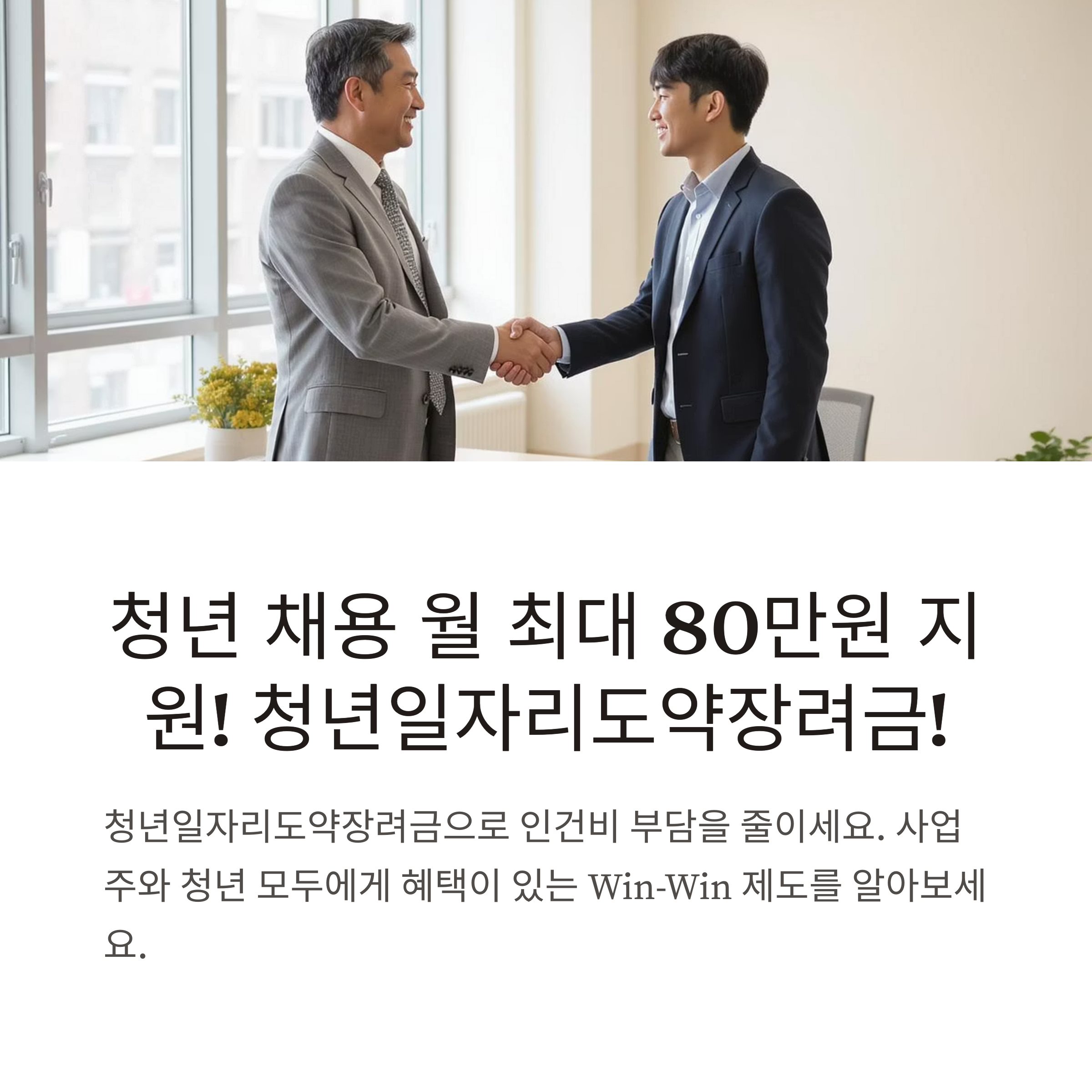 청년 채용하면 월 최대 80만원 지원! 사업주와 청년 모두 Win-Win 제도