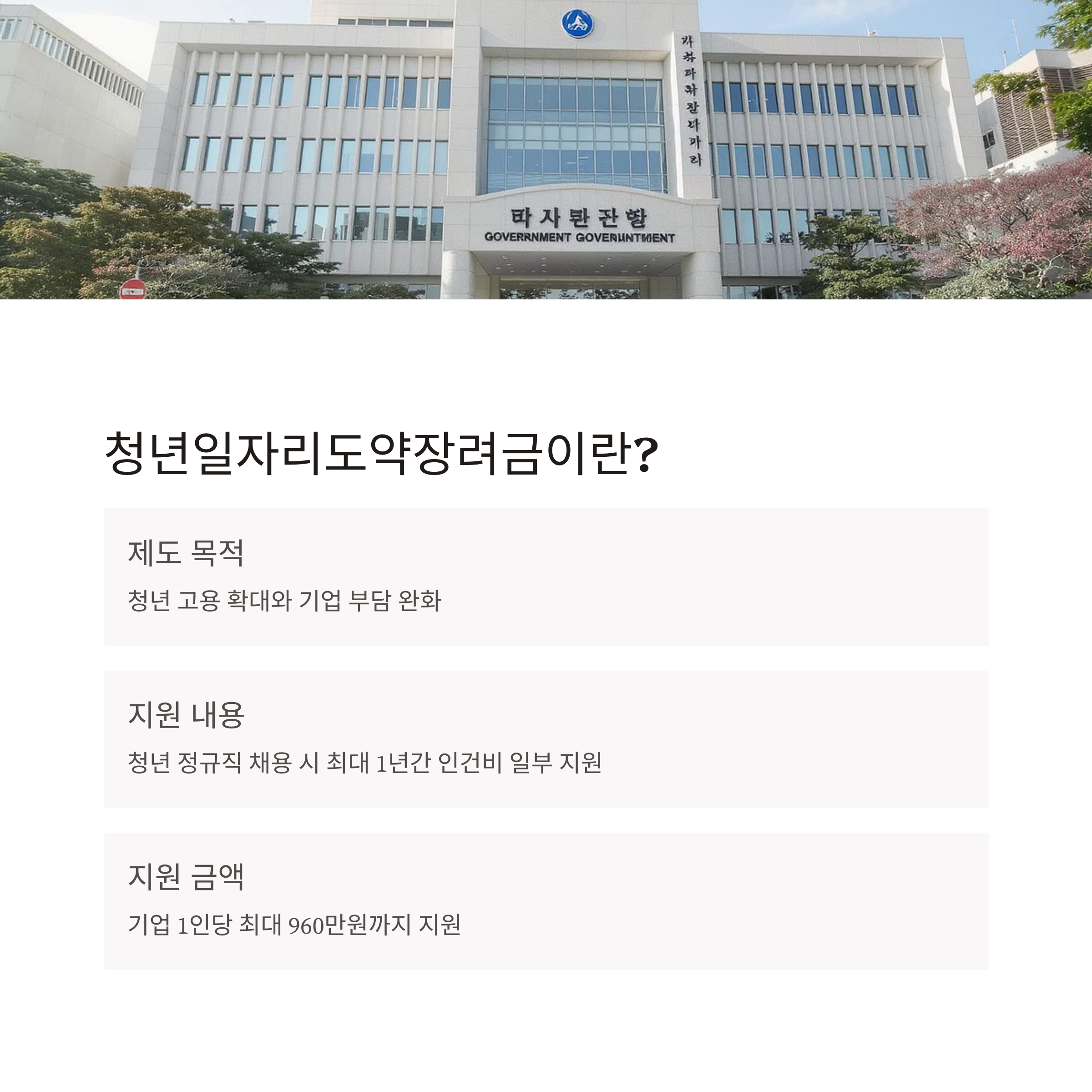| 지원 목적 | 청년 정규직 채용 유도 및 고용 창출 |