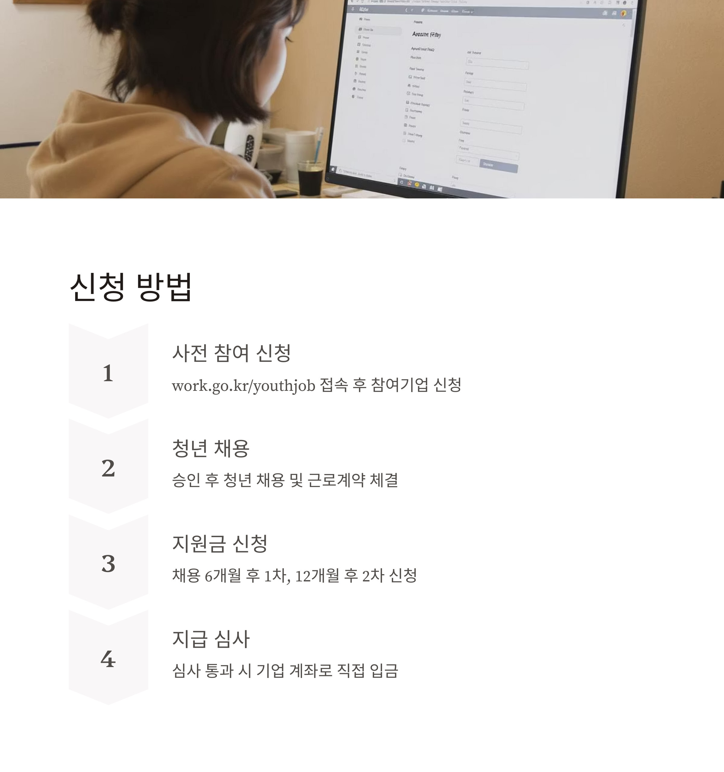 청년 채용일 이전에 반드시 신청을 완료해야 합니다.