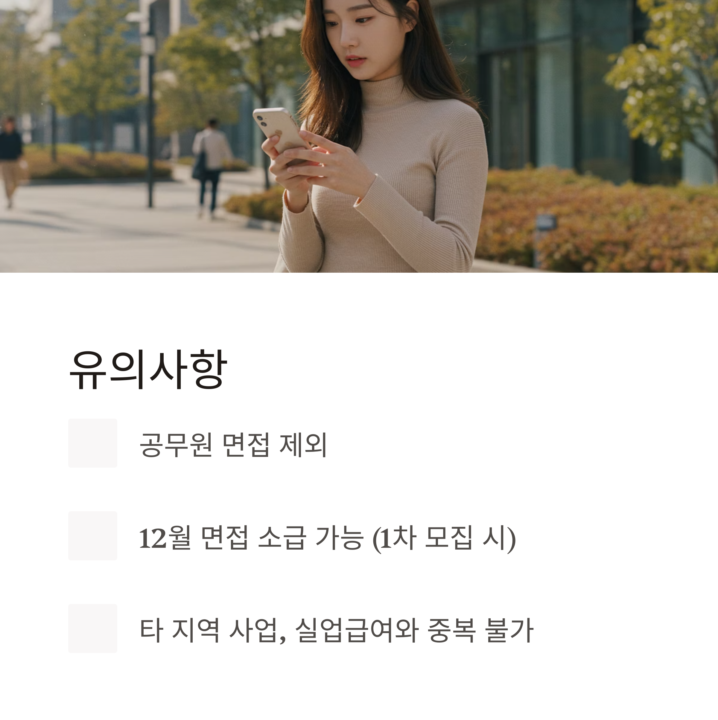 - 중복지원 불가: 타 지역 사업, 실업급여 수급 중인 경우 제한