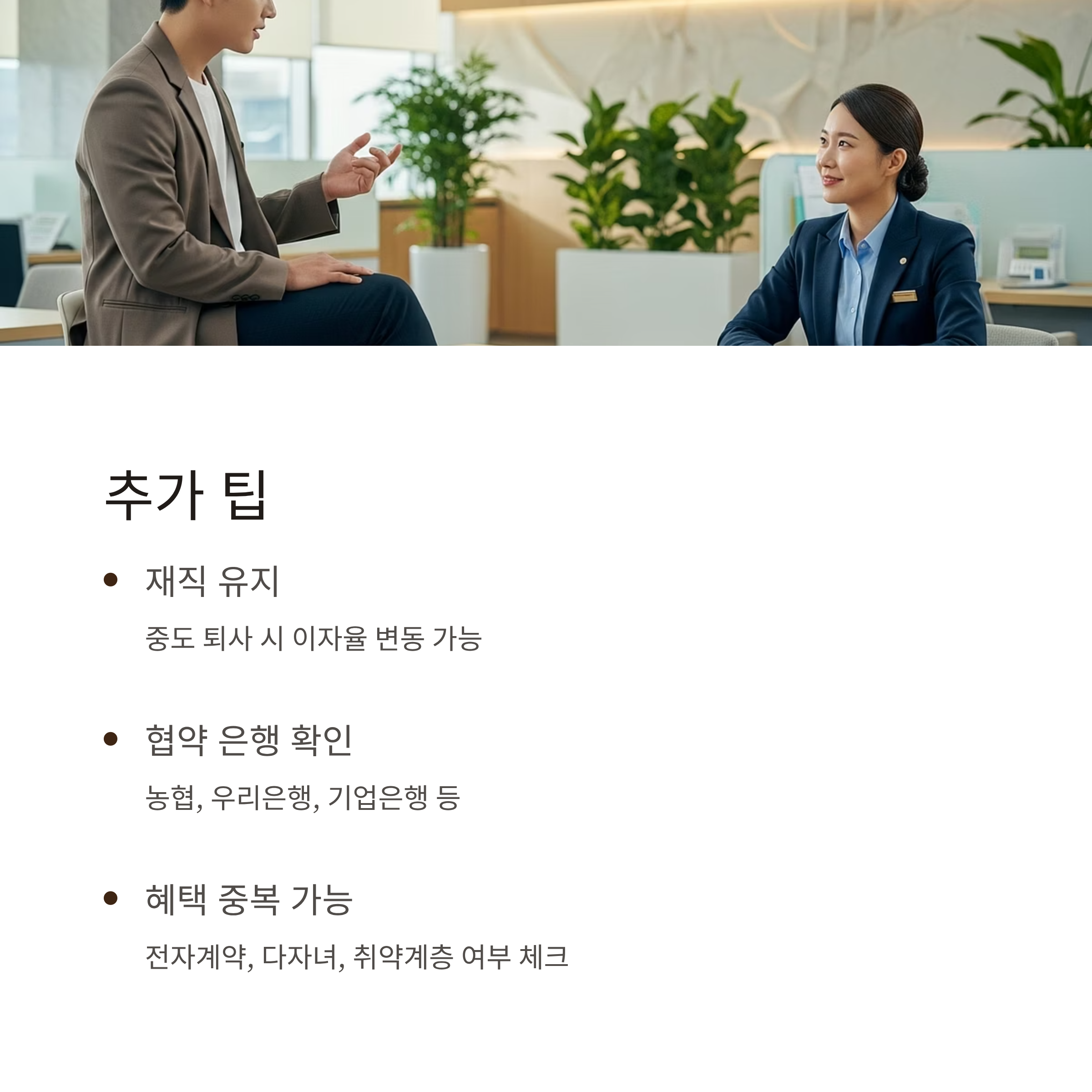 1. 중도 퇴사 시 이자율이 변동될 수 있어 재직 지속 여부 중요