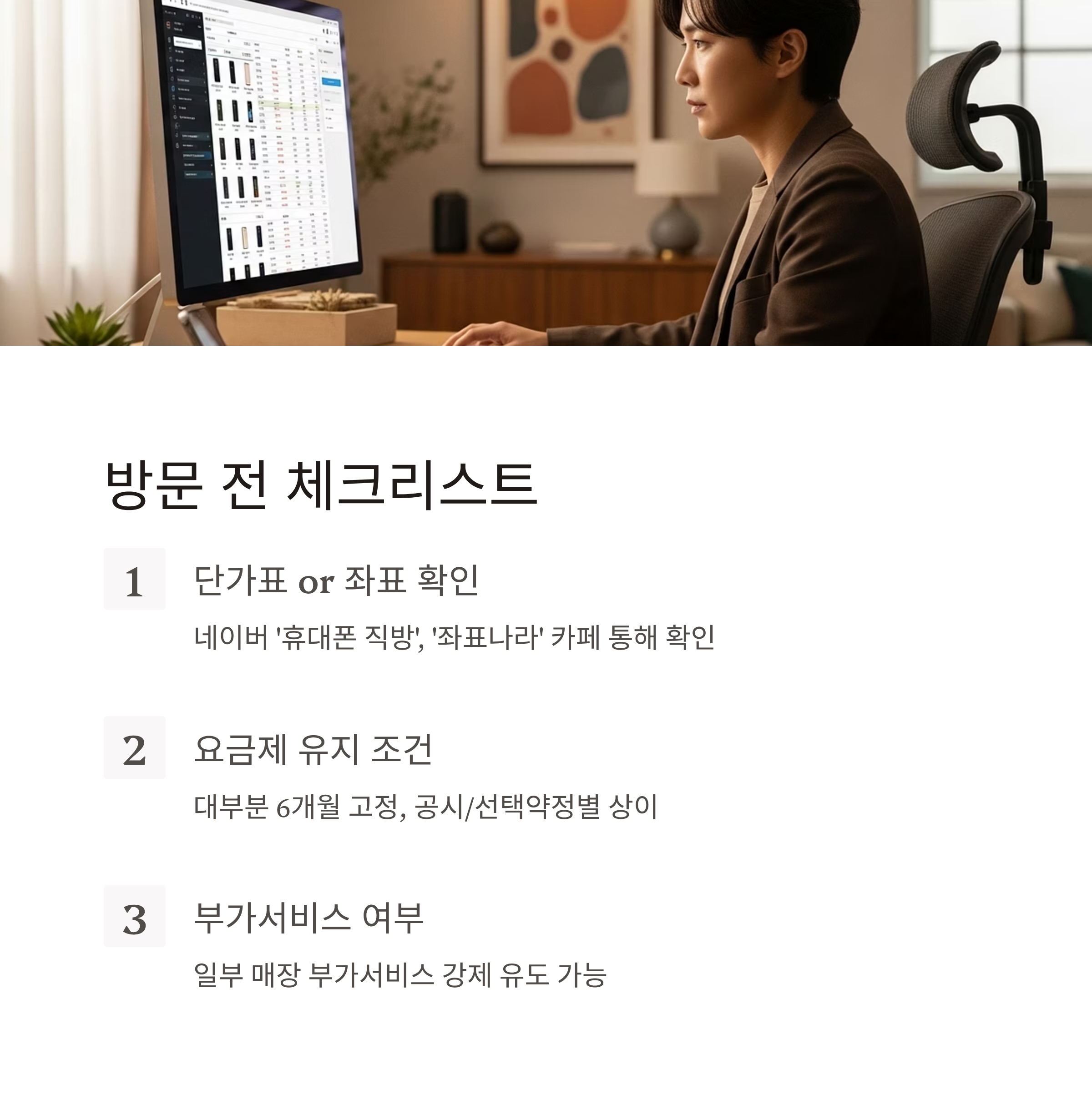 | 단가표 or 좌표 확인 | 네이버 ‘휴대폰 직방’, ‘좌표나라’ 카페 통해 단말기별 지원금 확인 필수 |