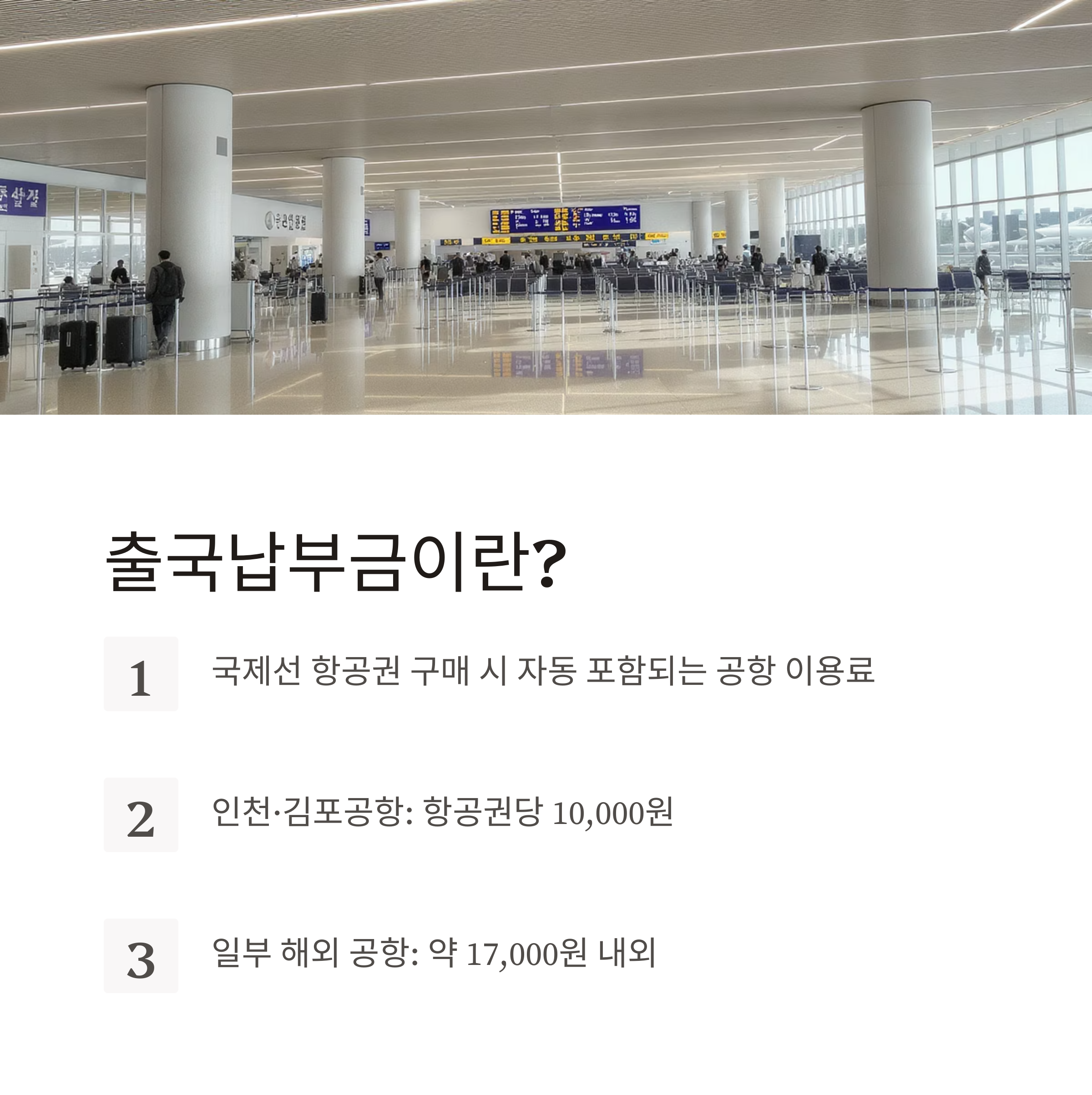 대표적으로 인천·김포공항 이용 시 항공권당 10,000원이 포함되며,