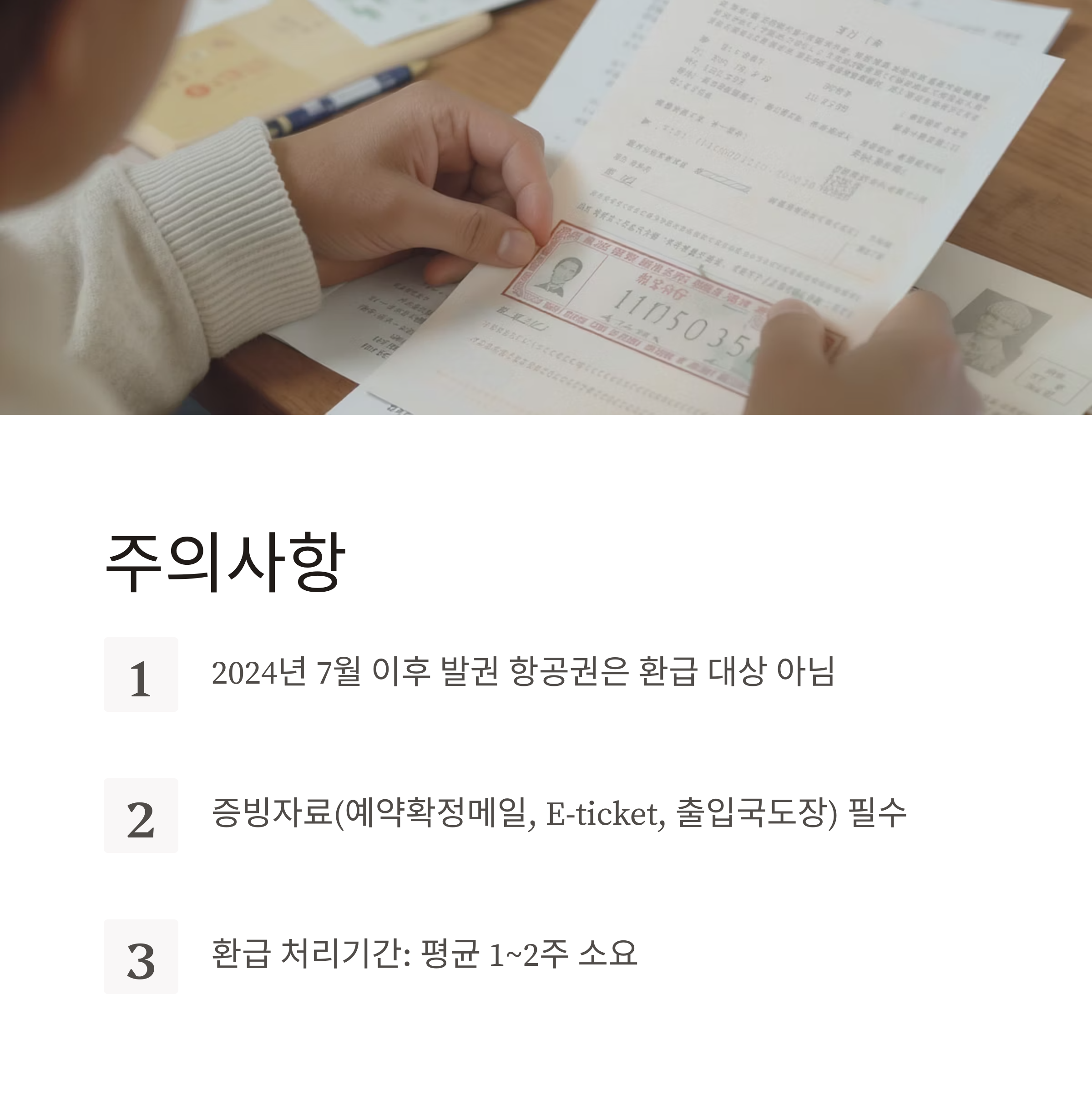 - 2024년 7월 이후 발권한 항공권은 환급 대상이 아닙니다.