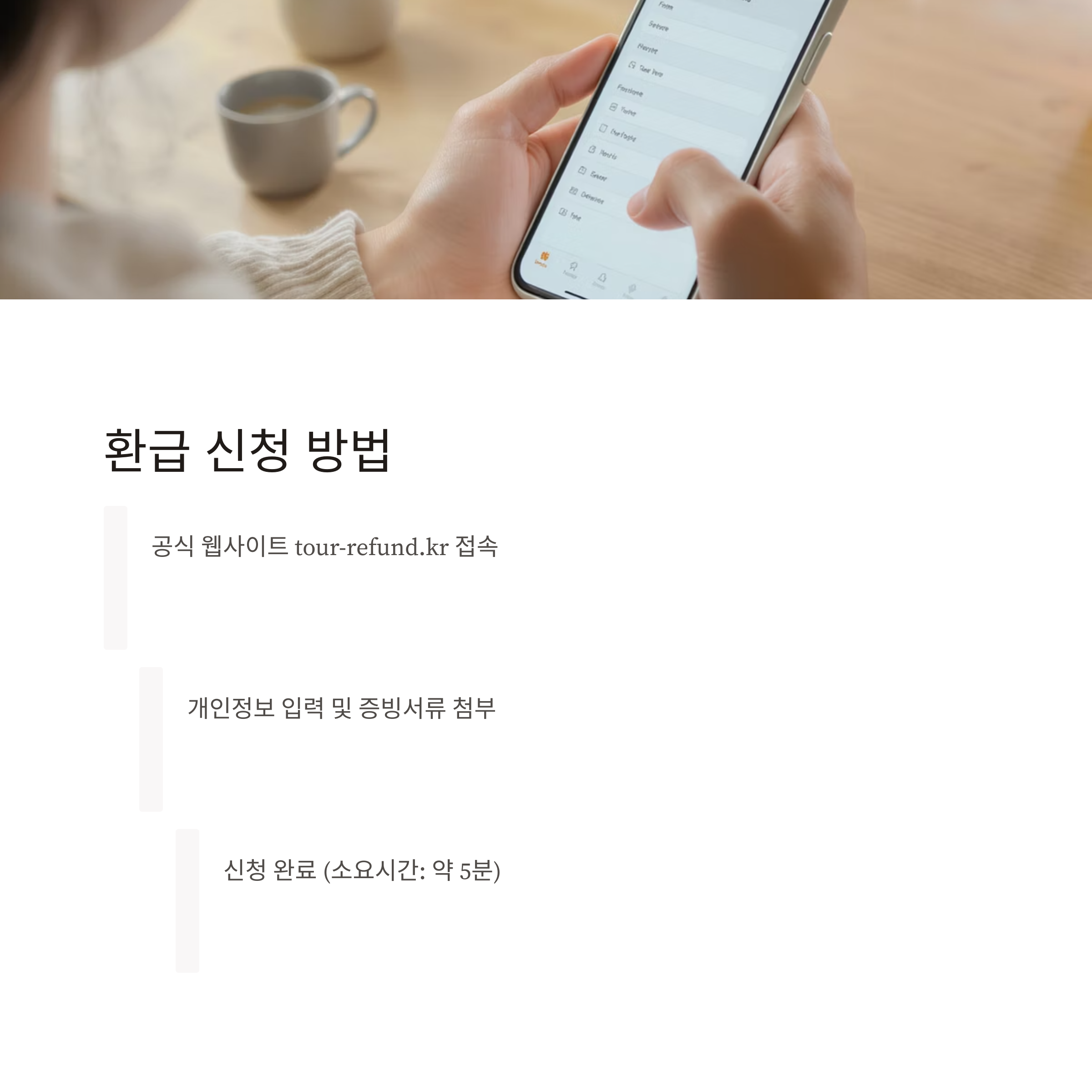 환급은 전용 공식 웹사이트 tour-refund.kr에서 간단하게 신청할 수 있습니다.