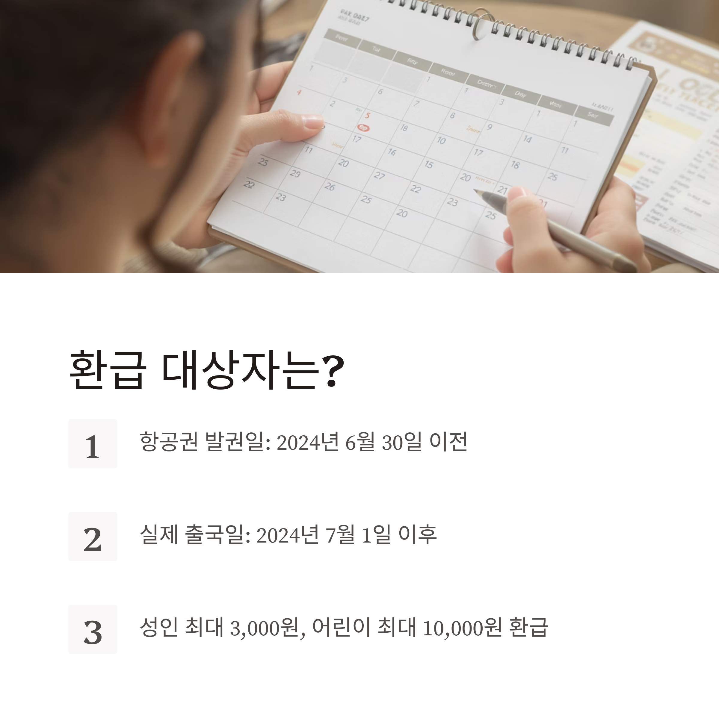 환급 대상자 | 2024.6.30 이전 발권 + 2024.7.1 이후 출국자 |