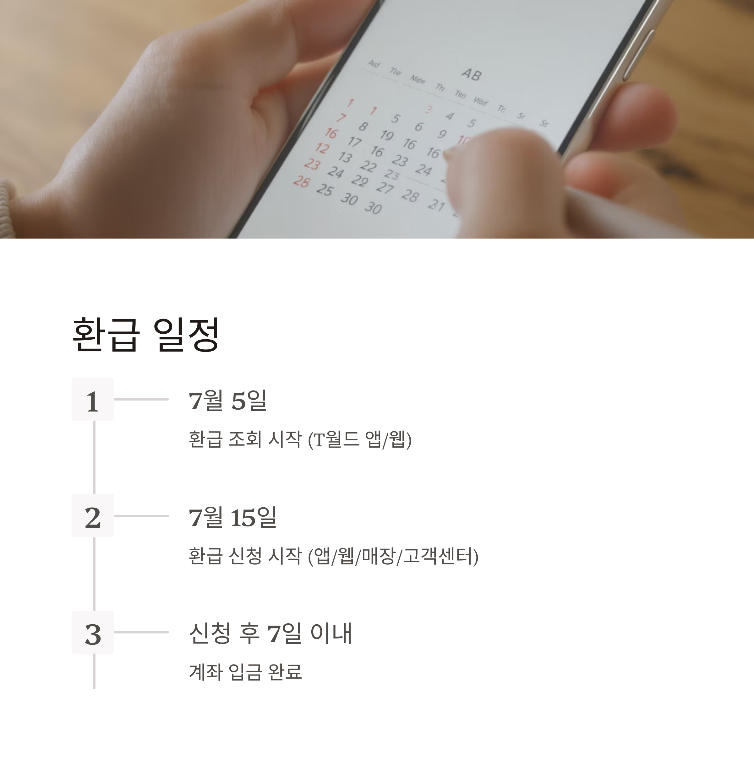 환급 조회 시작 | 2025년 7월 5일 | T월드 앱 및 웹사이트에서 가능 |