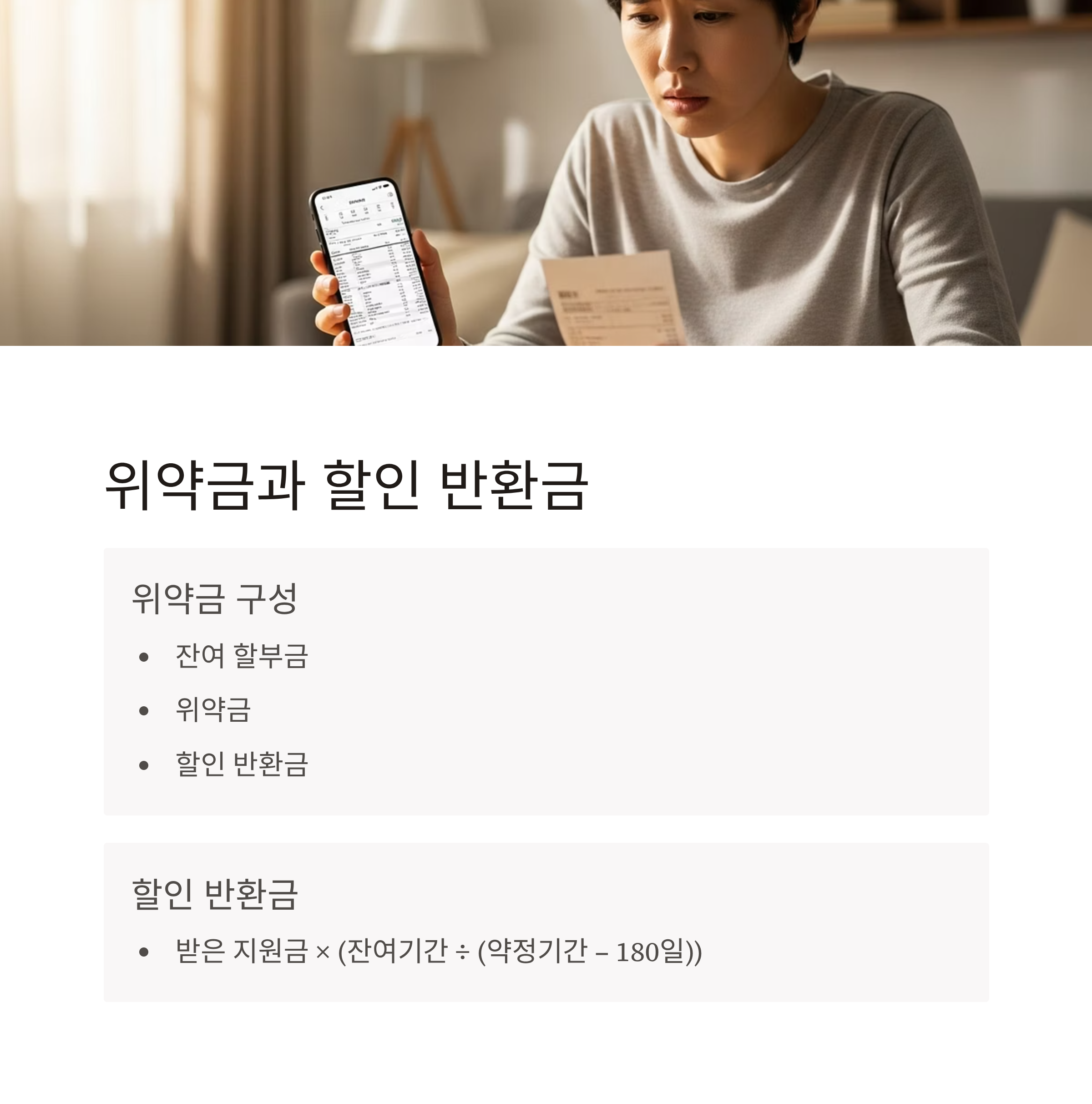 - 위약금 구성 = 잔여 할부금 + 위약금 + 할인 반환금