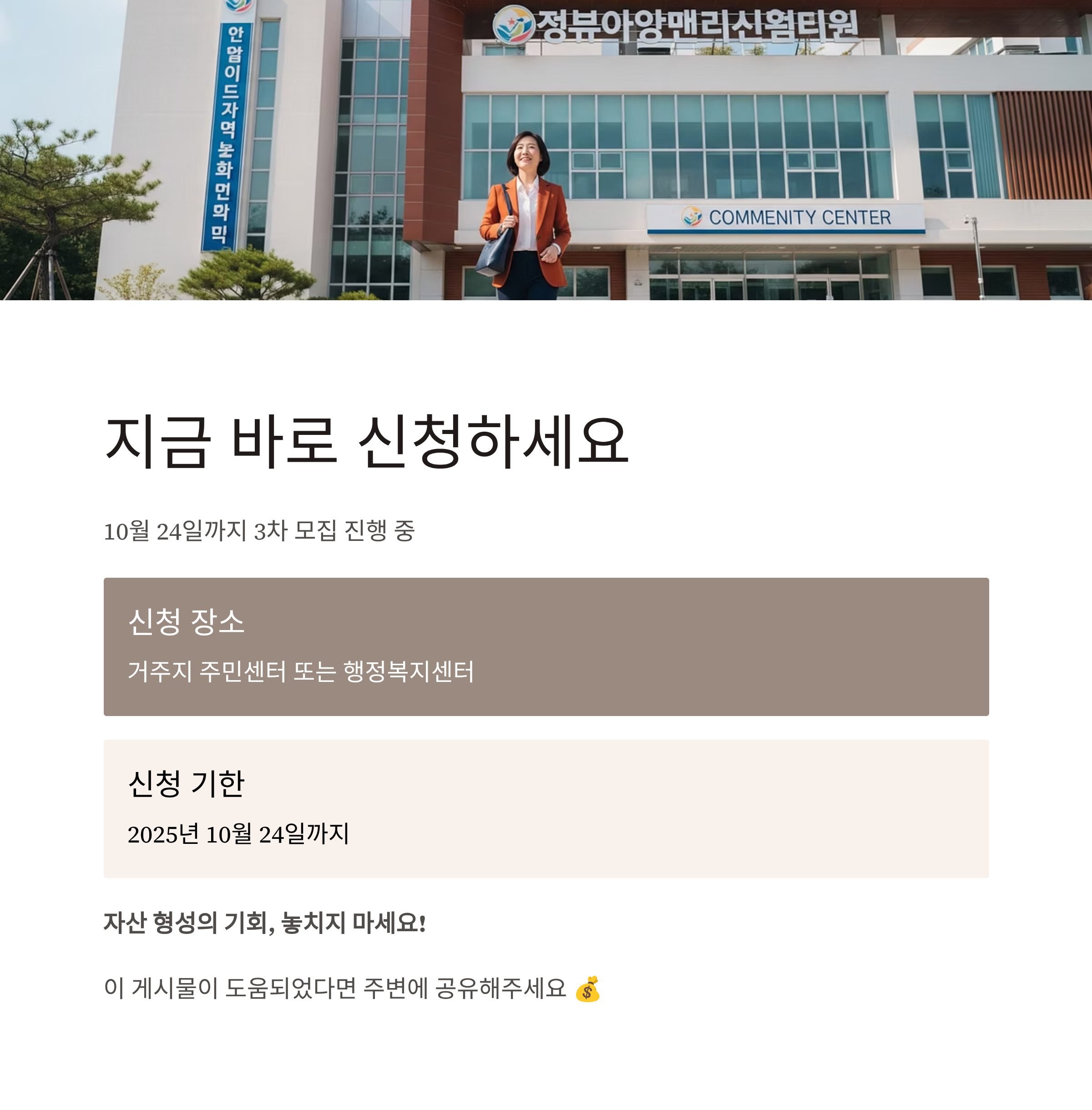 자립을 위한 자산을 만들고 싶다면, 지금 이 기회를 꼭 활용해보세요.
